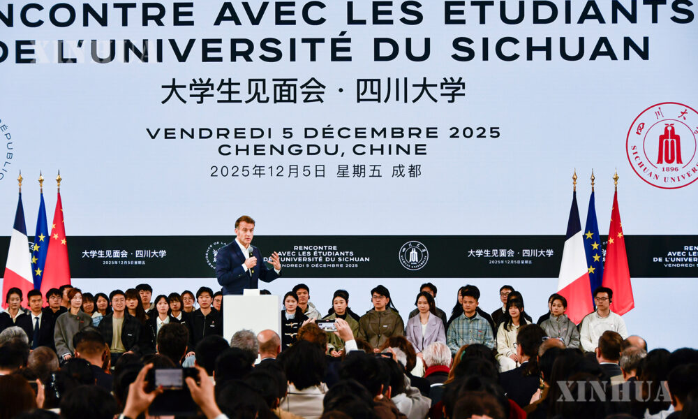 ချိန်တူး၊ ဒီဇင်ဘာ ၆ ရက် (ဆင်ဟွာ) ပြင်သစ်နိုင်ငံ သမ္မတ မက်ခရွန်သည် ဒီဇင်ဘာ ၅ ရက်က တရုတ်နိုင်ငံ ချိန်တူးမြို့ရှိ စီချွမ်းပြည်နယ် အားကစားရုံသို့ သွားရောက်၍ ချိန်တူးမြို့၌ ၂၀၂၅ ခုနှစ် နိုင်ငံတကာ စားပွဲတင်တင်းနစ်အဖွဲ့ချုပ် (ITTF) ကျားမအဖွဲ့လိုက် ကမ္ဘာ့ဖလားပြိုင်ပွဲတွင် ပါဝင်ယှဉ်ပြိုင်နေသည့် တရုတ်-ပြင်သစ်...