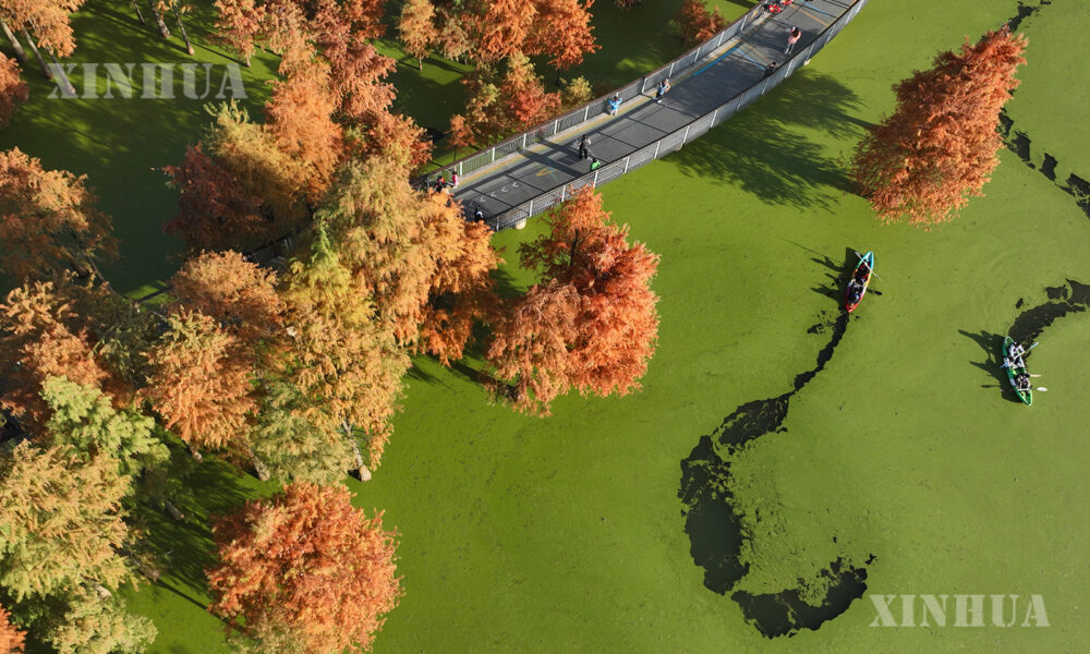 ဟန်ကျိုး၊ နိုဝင်ဘာ ၂၉ ရက် (ဆင်ဟွာ) အပူချိန်ကျဆင်းလာသည်နှင့်အမျှ တရုတ်နိုင်ငံ ကျဲ့ကျန်းပြည်နယ် ဟန်ကျိုးမြို့ ချင်းဆန်းရေကန်အနီးရှိ တရုတ်မူ (Mu) ၁၀၀ နီးပါး ကျယ်ဝန်းသော Pond ဆိုက်ပရက်စ်ပင်၊ Bald ဆိုက်ပရက်စ်ပင် သစ်တောကြီးသည်...