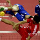 ……………………….. (English Version)(1) Anthony Sinisuka Ginting of Indonesia hits a return during the men’s singles 2nd round match against Nishimoto Kenta of Japan at the Badminton...