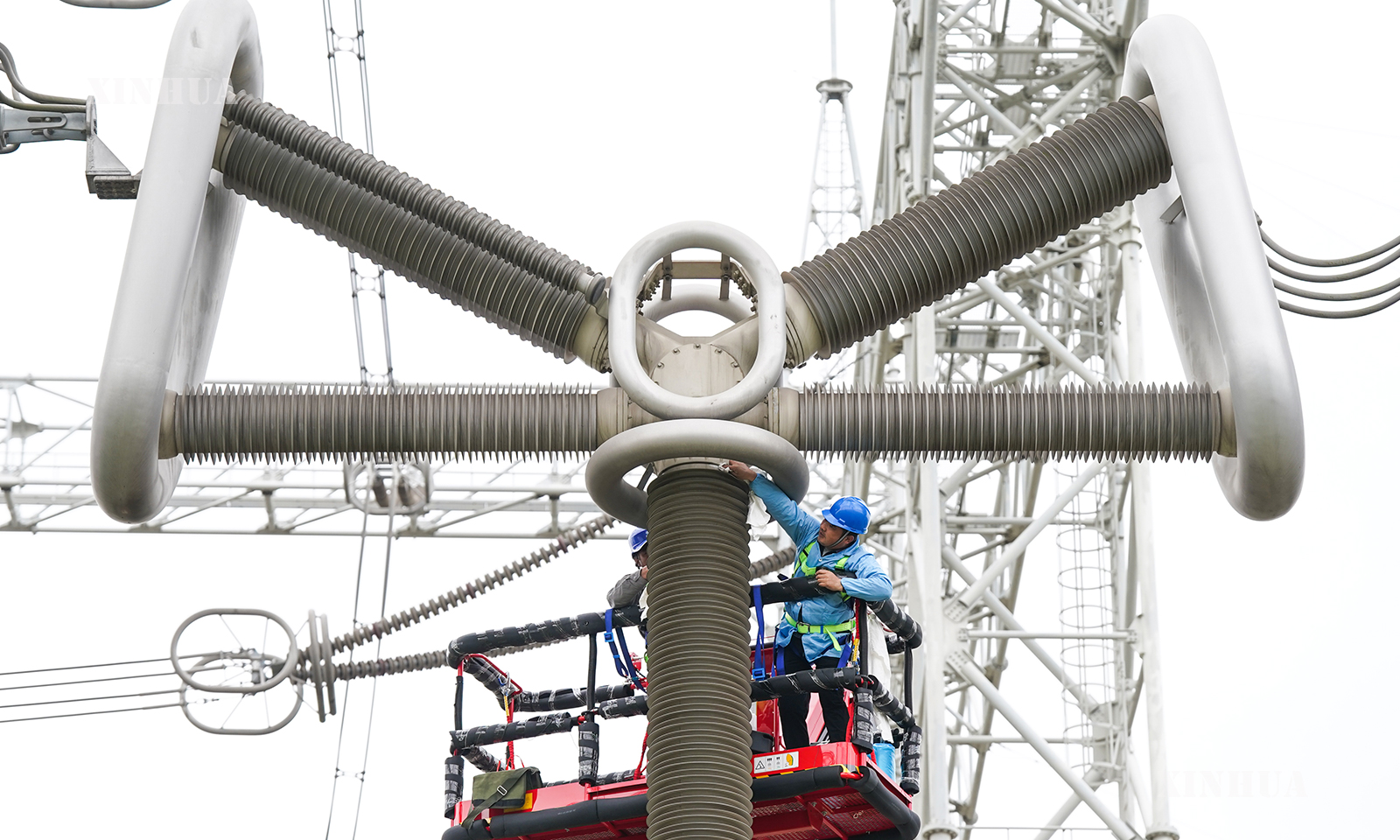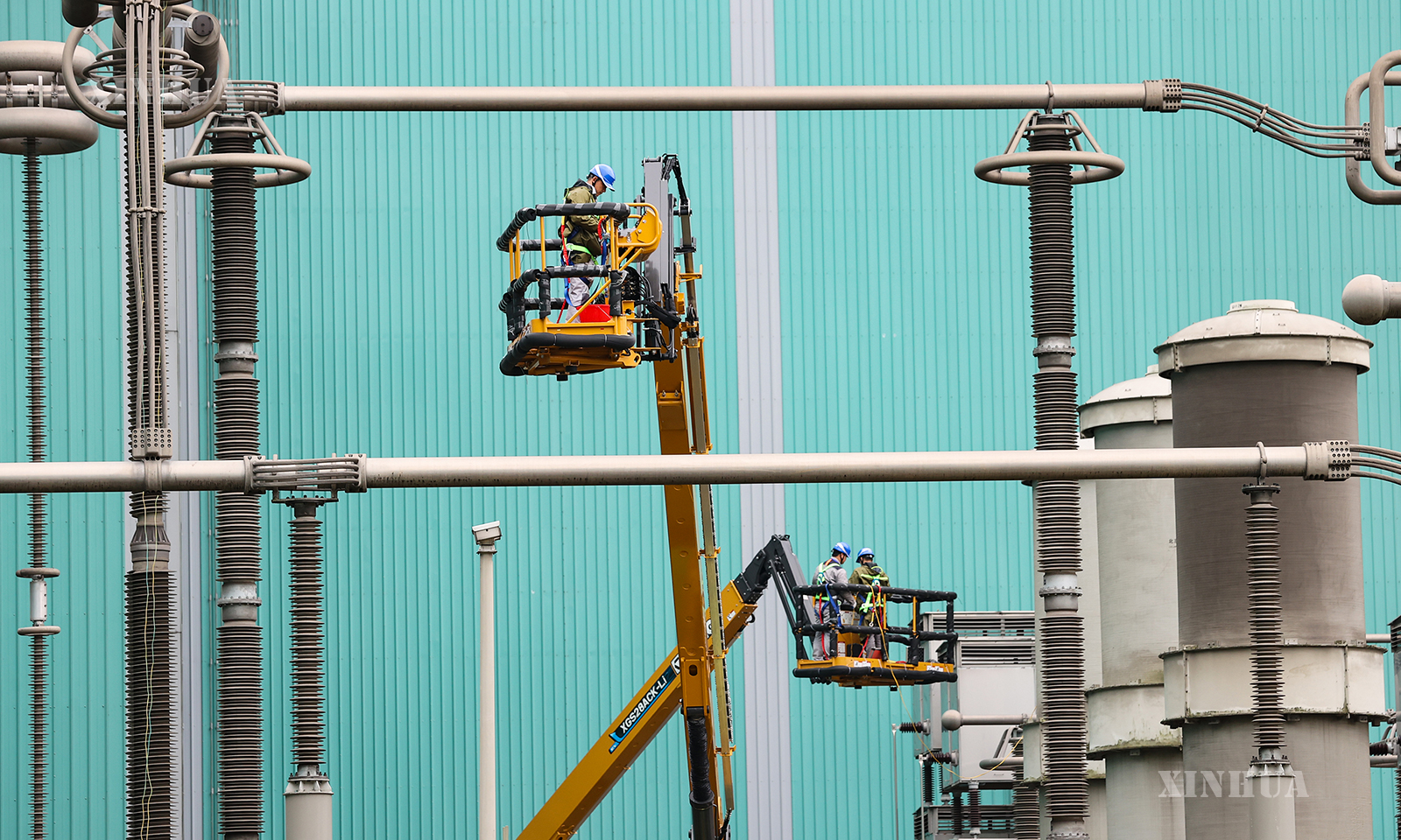 图说:10月20日,安徽送变电工程有限公司检修人员在古泉换流站进行检修作业。 新华社记者 杜宇 摄