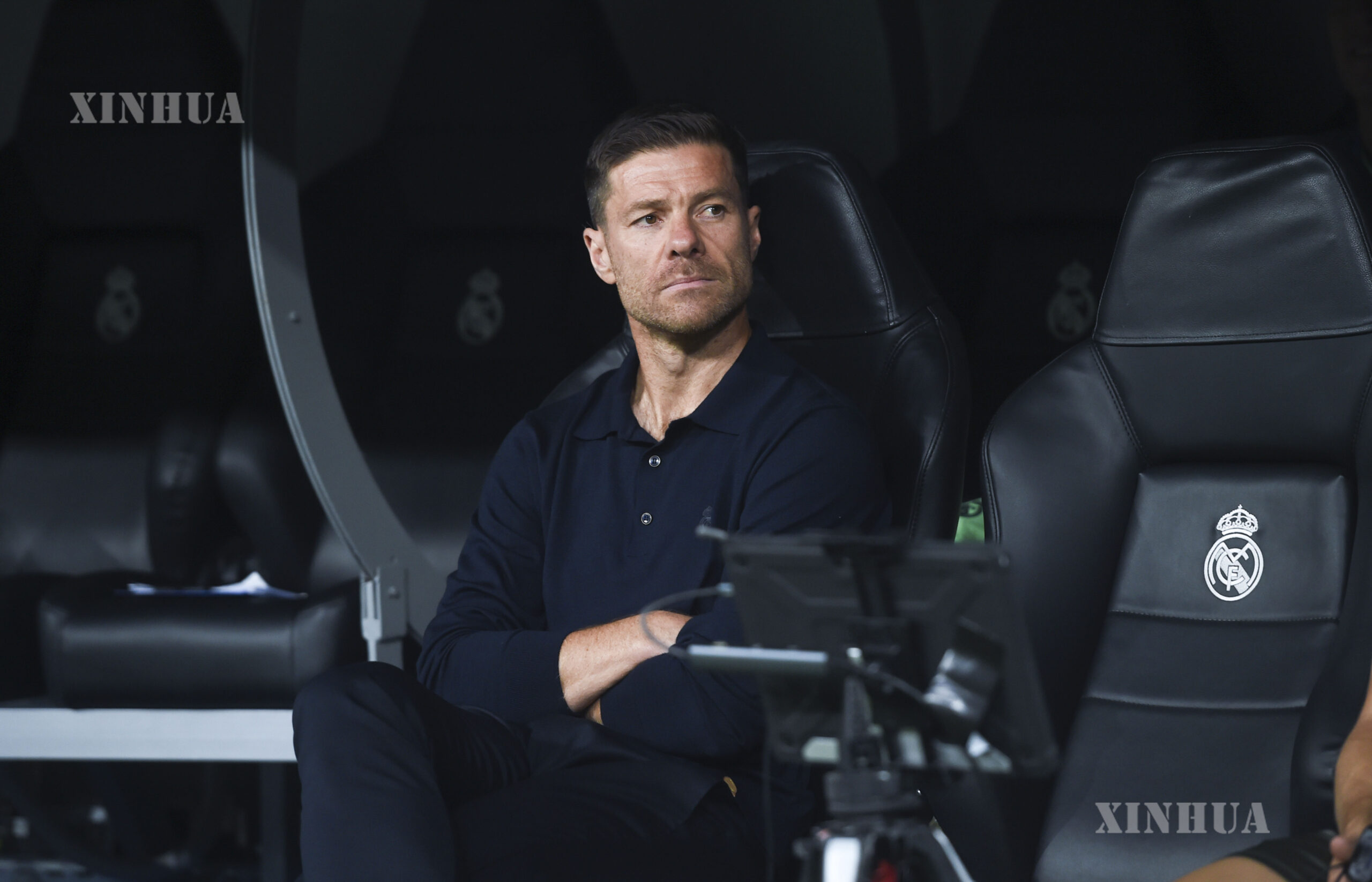 Xabi Alonso, coach of Real Madrid, reacts during the first round match of UEFA Champions League between Real Madrid and Olympique Marseille in Madrid, Spain, on Sept. 16, 2025. (Photo by Gustavo Valiente/Xinhua)