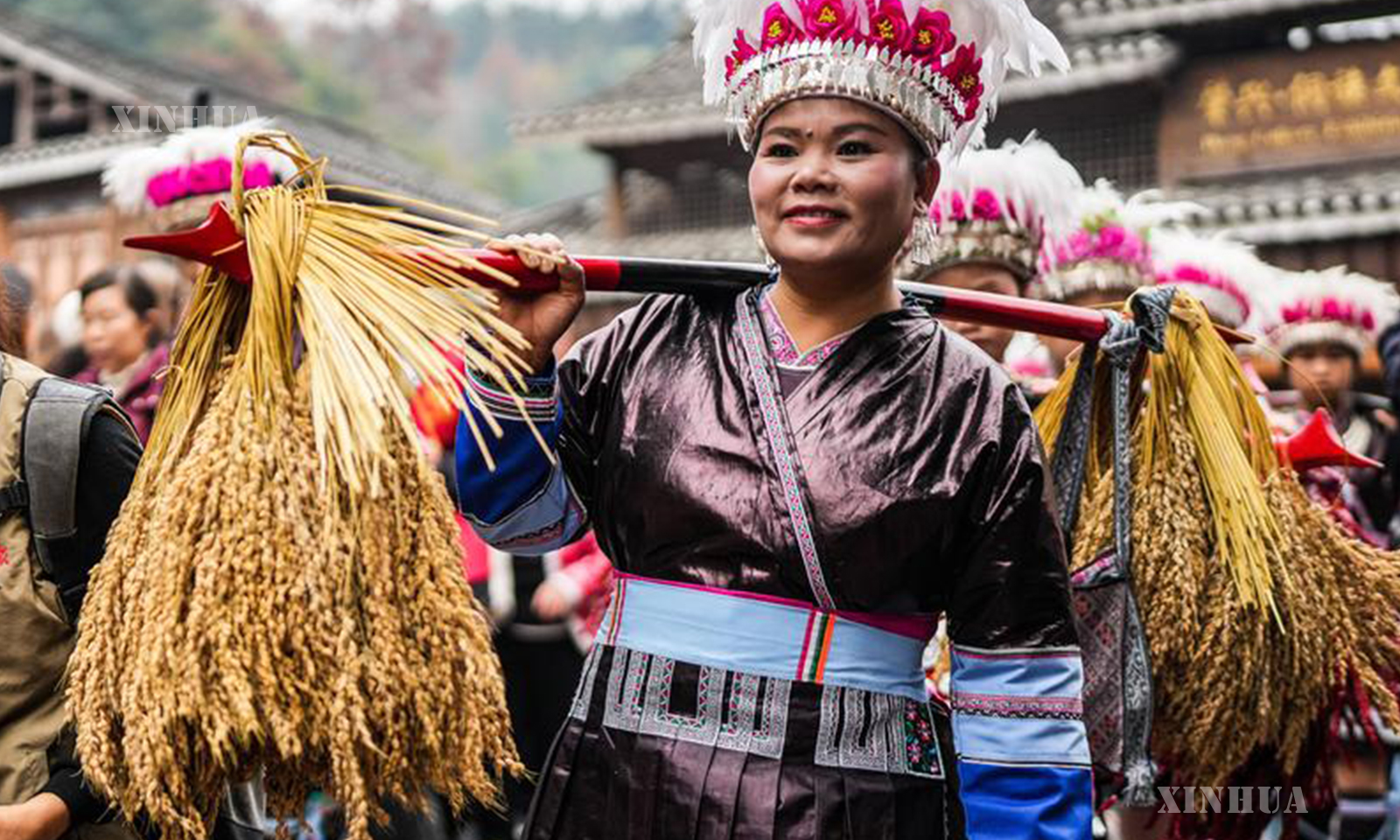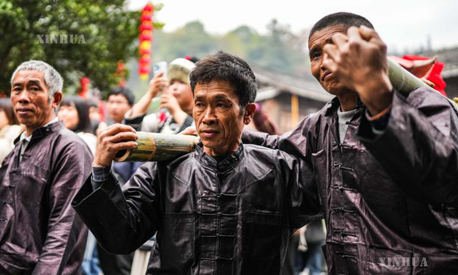 2. 12月20日,肇兴侗寨的展演队伍在行进中。新华社记者 陶亮 摄