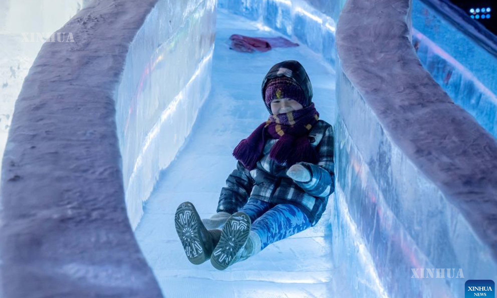 A child plays at an ice and snow theme park in Manzhouli, north China’s Inner Mongolia Autonomous Region, Dec. 20, 2025. (Xinhua/Lian Zhen)