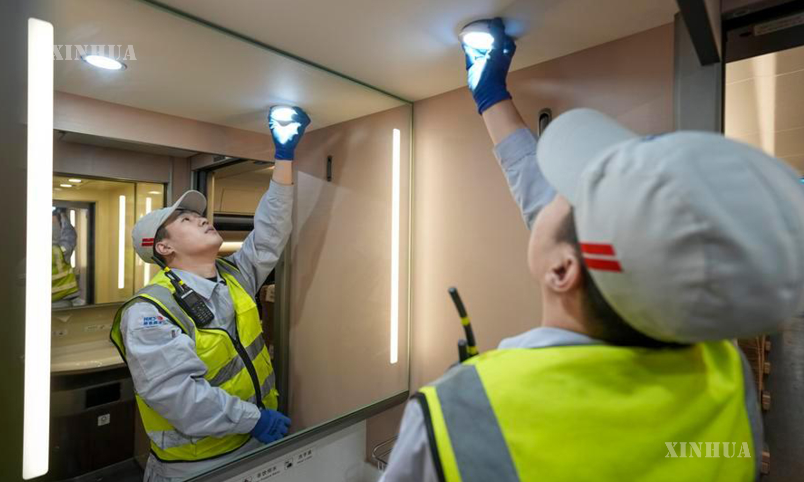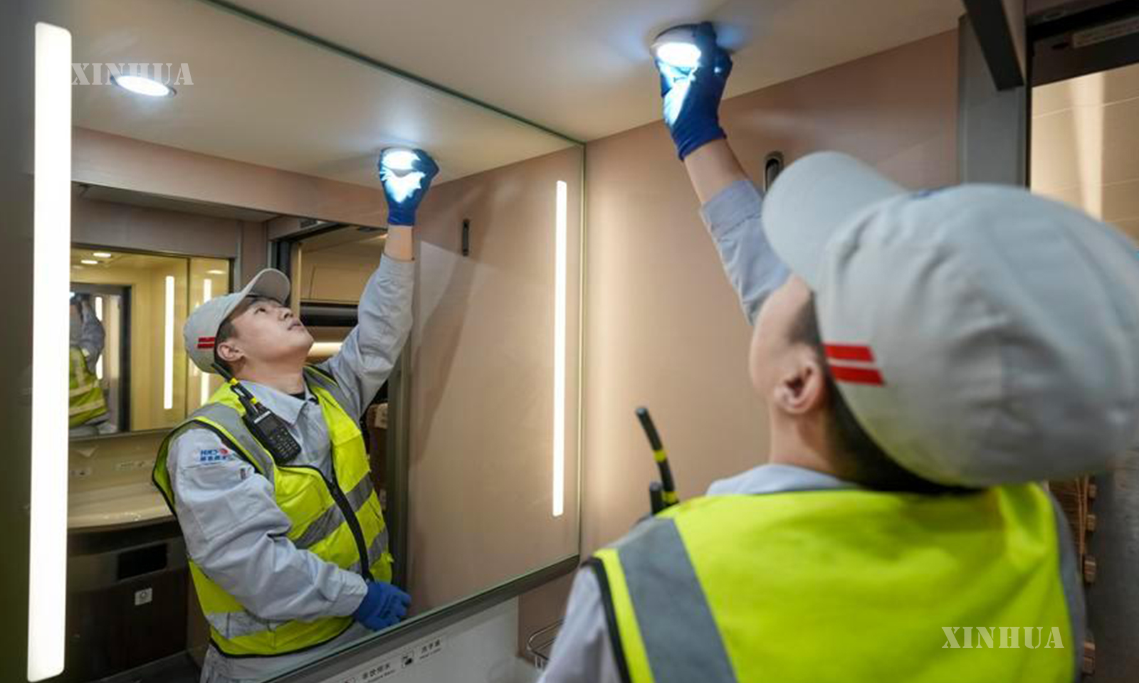 ရထားလုပ်ငန်းစက်ပြင်ဆရာတစ်ဦးဖြစ်သူ E Ming သည် ထိုင်ခုံများ၊ နားနေခန်းများနှင့် လျှပ်စစ်ရေဘွိုင်လာအိုးများ စသည့် ရထားပေါ်ရှိ ပစ္စည်းကိရိယာများကို စစ်ဆေးခြင်းနှင့် ပြုပြင်ထိန်းသိမ်းခြင်းလုပ်ငန်းအတွက် တာဝန်ယူထားသူဖြစ်သည်။ နွေဦးပွဲတော် ခရီးသွားရာသီအတွင်း ထိုအဆောက်အအုံများက အသုံးပြုမှုများပြားသဖြင့် ချို့ယွင်းချက်များ ဖြစ်ပေါ်လေ့ရှိသည်။ E Ming ၏ အဖွဲ့သည် ပစ္စည်းကိရိယာများ အခြေအနေကို ကိုင်တွယ်ဖြေရှင်းရန် ညအချိန်၌ ရထား၏ ပြုပြင်ထိန်းသိမ်းရေးလုပ်ငန်းချိန်အတွင်း အချိန်နှင့်တစ်ပြေးညီ တာဝန်ထမ်းဆောင်လျက်ရှိသည်။ (Xinhua)