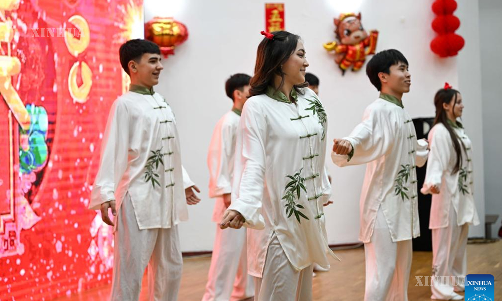 Students of Al-Farabi Kazakh National University perform a dance during a Chinese New Year cultural event in Almaty, Kazakhstan, Feb. 13, 2026. (Xinhua/Li Renzi)