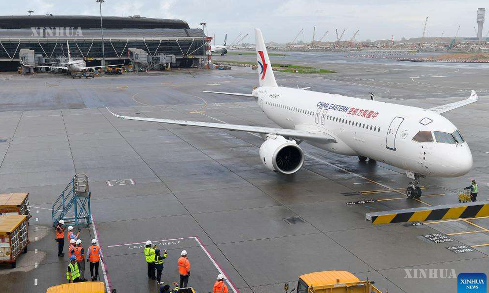 A C919 jetliner of the China Eastern Airlines arrives at the Hong Kong International Airport in Hong Kong, south China, June 1, 2024. (Xinhua/Chen Duo)