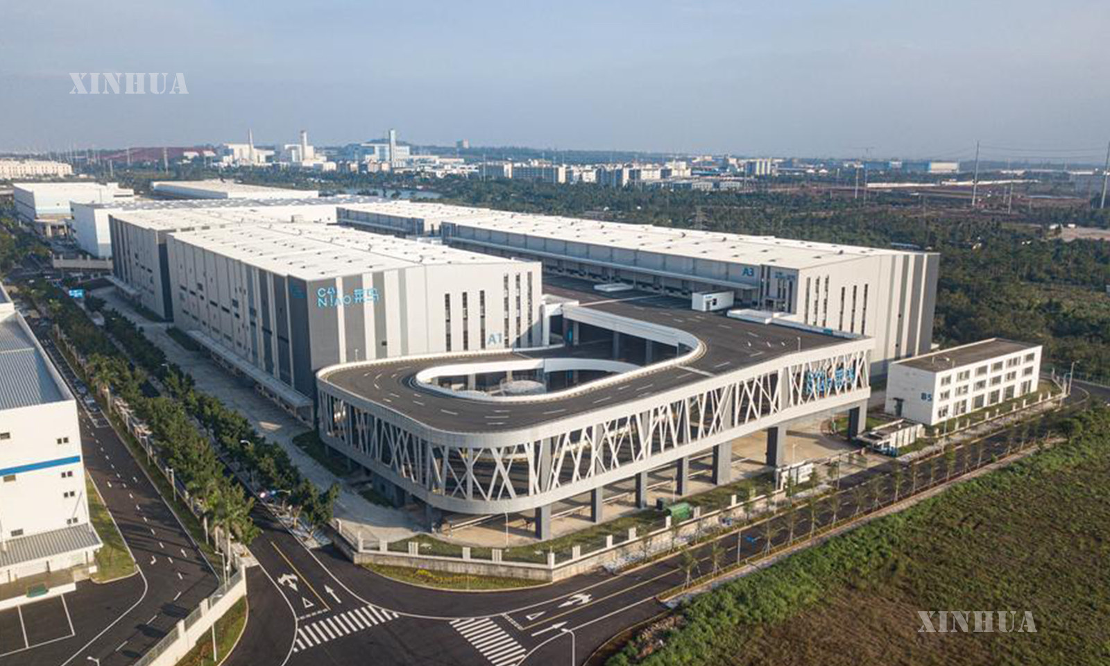 တရုတ်နိုင်ငံ တောင်ပိုင်း ဟိုင်နန်ပြည်နယ် ဟိုင်ခို ဘက်စုံကုန်သွယ်ရေးဇုန်ရှိ ထောက်ပံ့ပို့ဆောင်ရေး ဗဟိုချက်နေရာတစ်ခုအား ၂၀၂၅ ခုနှစ် နိုဝင်ဘာ ၂၃ ရက်က ဒရုန်းဖြင့်ရိုက်ကူးထားသော ဝေဟင်ဓာတ်ပုံ၌ တွေ့ရစဉ် (ဆင်ဟွာ)