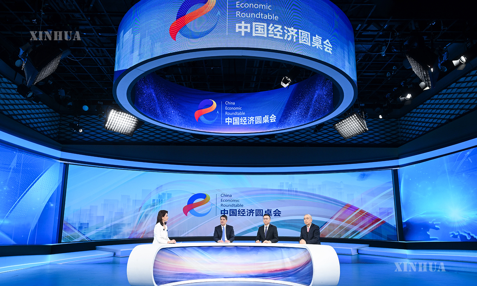 Guests attend the latest episode of the China Economic Roundtable, an all-media talk show hosted by Xinhua News Agency. (Xinhua/Chen Yehua)