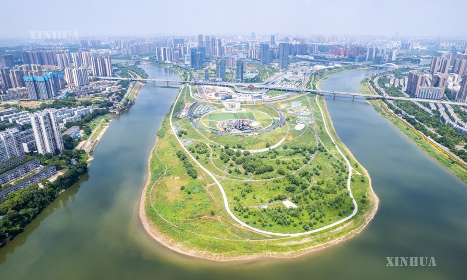 This aerial photo taken on June 7, 2023 shows a wetland park in Changsha, central China’s Hunan Province. (Xinhua/Chen Sihan)