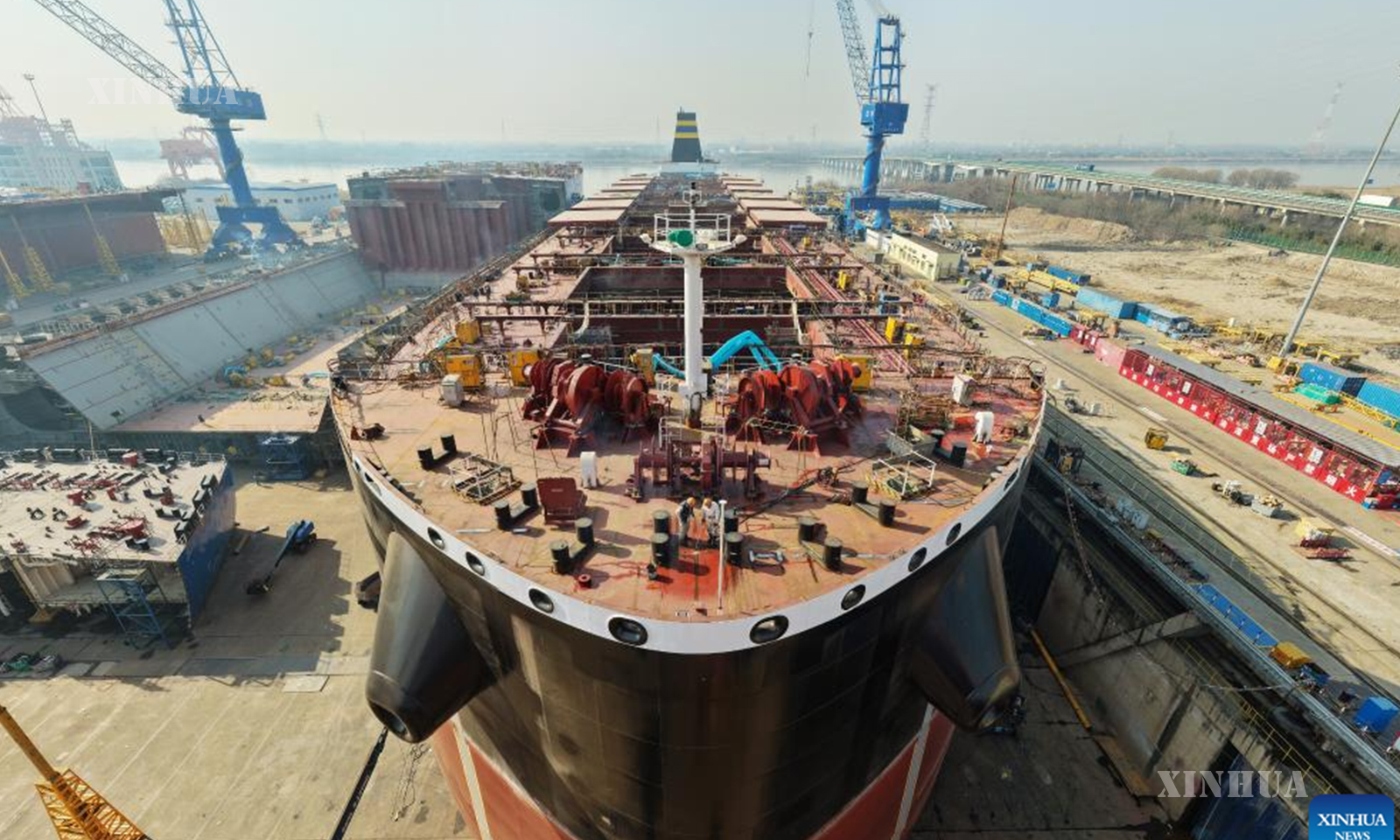 တရုတ်နိုင်ငံ အရှေ့ပိုင်း ကျန်းဆူးပြည်နယ် နန်ထုန်းမြို့ရှိ COSCO လက်အောက်ရှိ ကုမ္ပဏီတစ်ခုမှ ပြုပြင်ထားသည့် ဂရိသင်္ဘောတစ်စင်း ခုတ်မောင်းနေပုံကို ၂၀၂၆ ခုနှစ် ဇန်နဝါရီ ၂ ရက် တွေ့ရစဉ် (ဆင်ဟွာ)