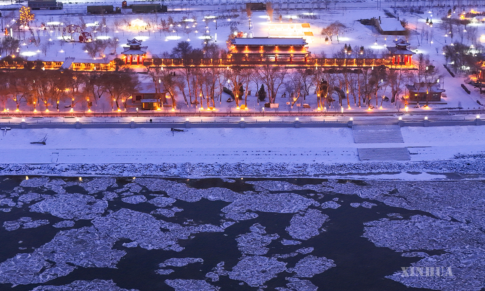 图说3:11月16日在黑龙江省富锦市沿江公园拍摄的初冬景色(无人机照片)。新华社发(曲玉宝摄)