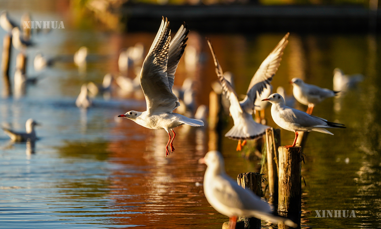 တရုတ်နိုင်ငံ ယူနန်ပြည်နယ် ကူမင်းမြို့ရှိ တျန်းချီရေကန်နံဘေး ဟိုင်ဟုန်ရေဝပ်ဒေသပန်းခြံတွင် ခရီးသွားဧည့်သည်များက စင်ရော်ခေါင်းမဲငှက်များအား အစာကျွေးနေသည်ကို ၂၀၂၅ ခုနှစ် ဒီဇင်ဘာ ၁၀ ရက်က တွေ့ရစဉ် (ဆင်ဟွာ)