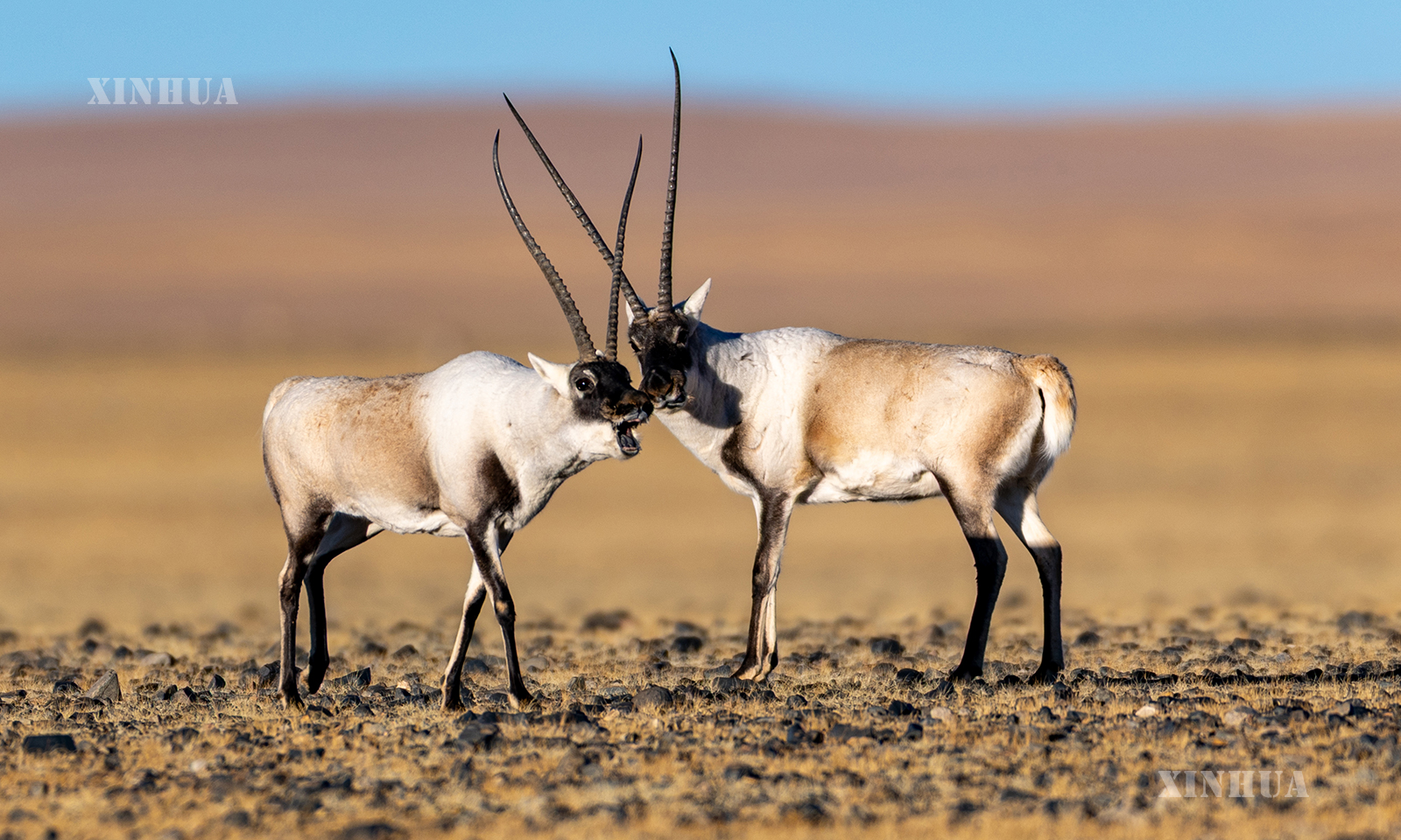 图说1:这是在羌塘国家级自然保护区拍摄的两头雄性藏羚羊(12月3日摄)。 新华社记者 姜帆 摄