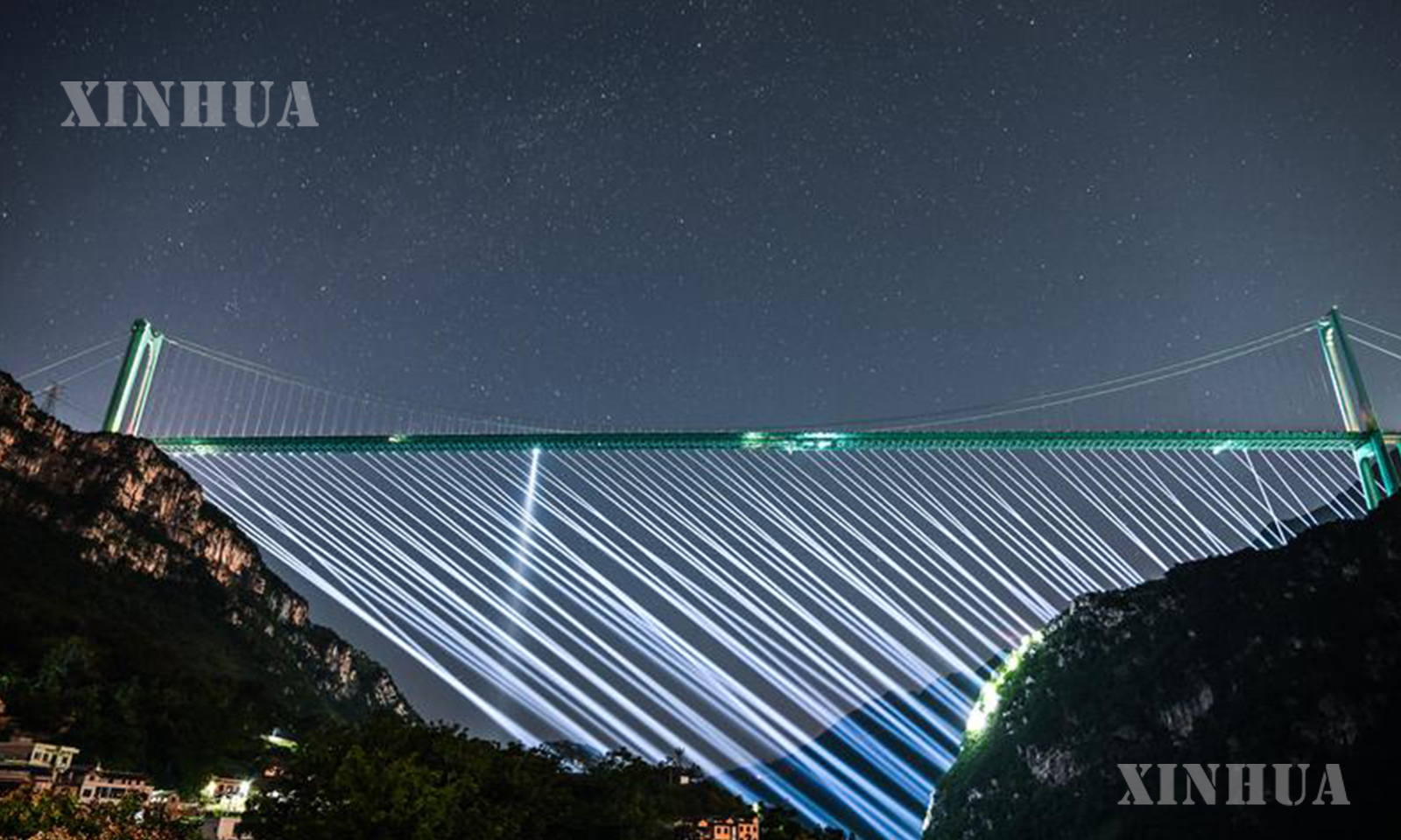 1. 这是10月12日拍摄的星空下的贵州花江峡谷大桥。新华社记者 杨文斌 摄