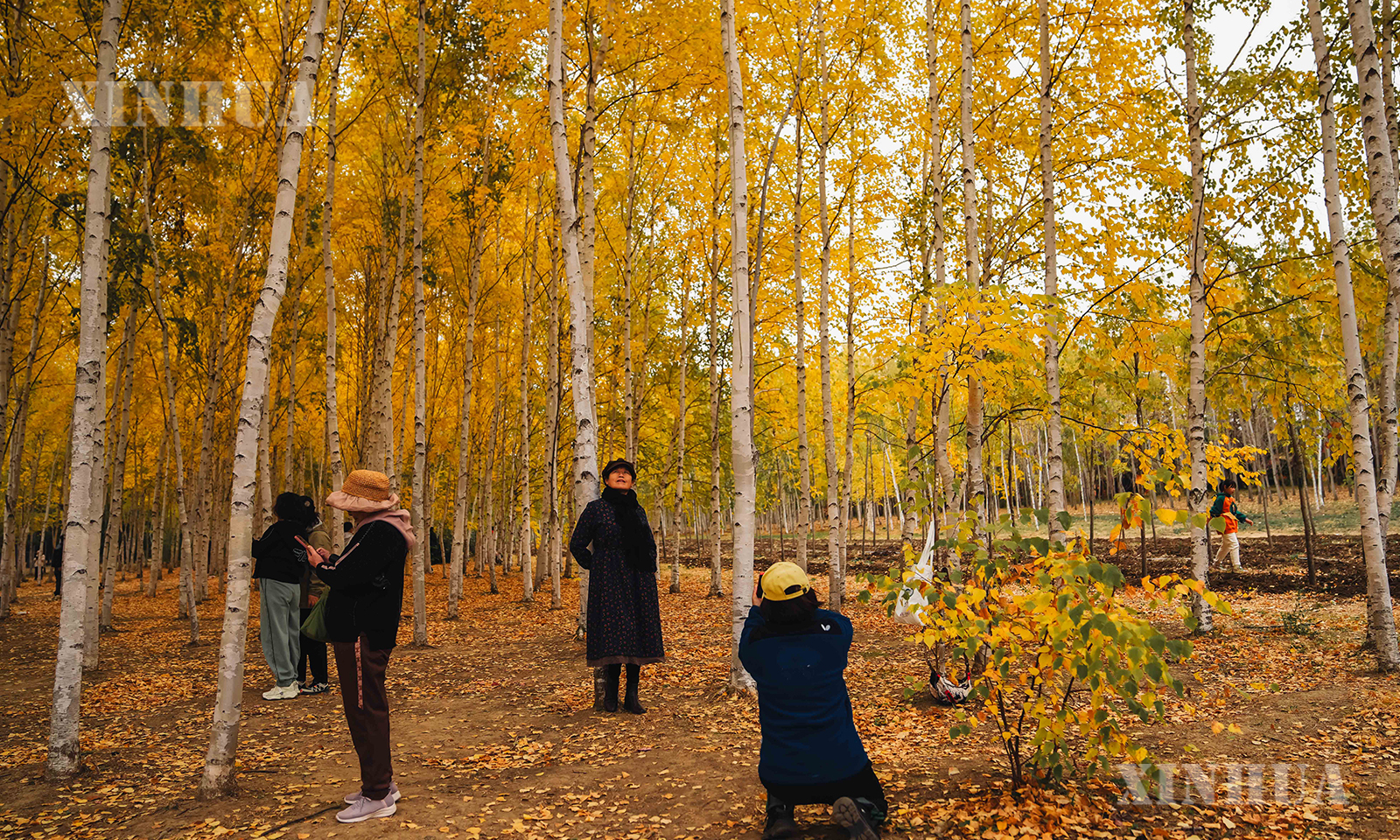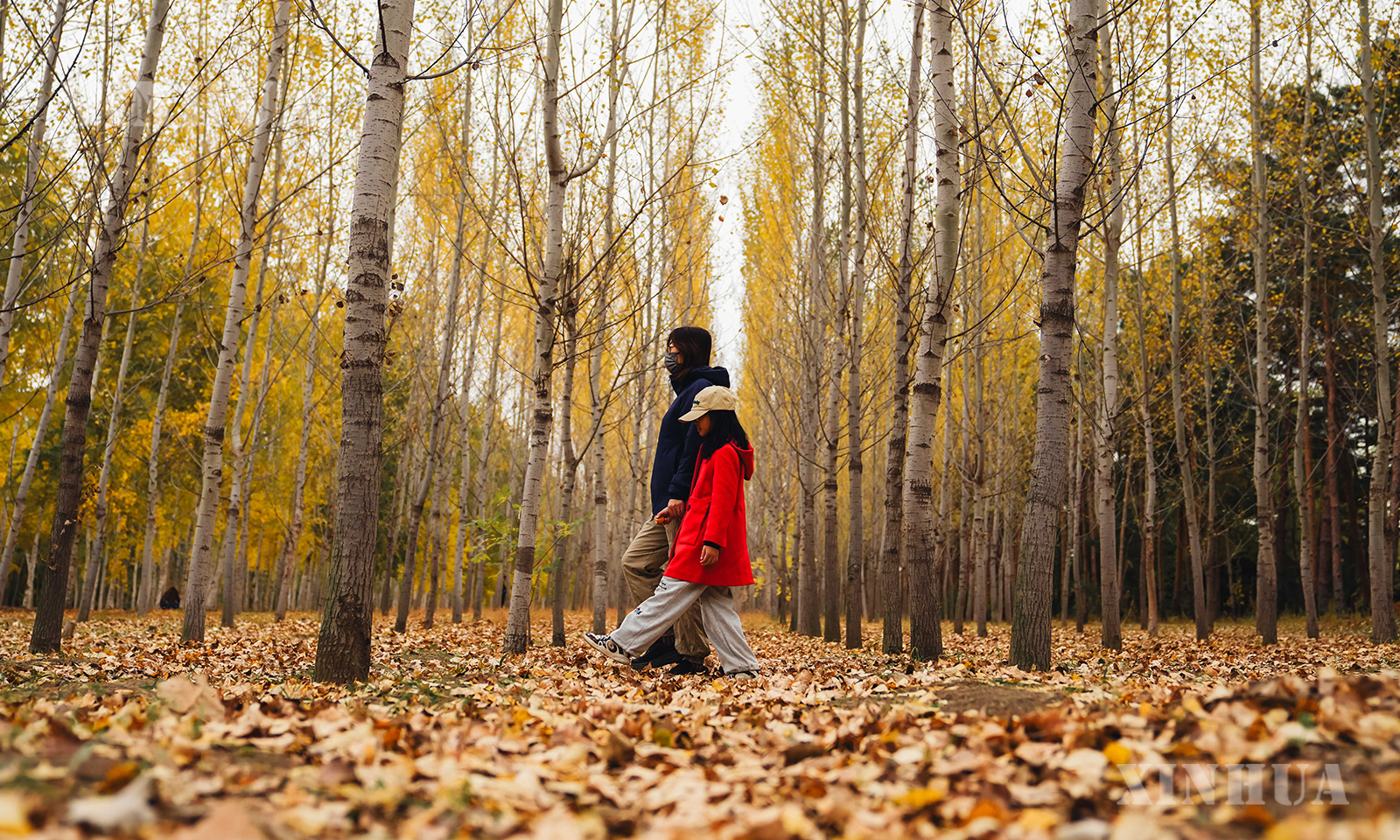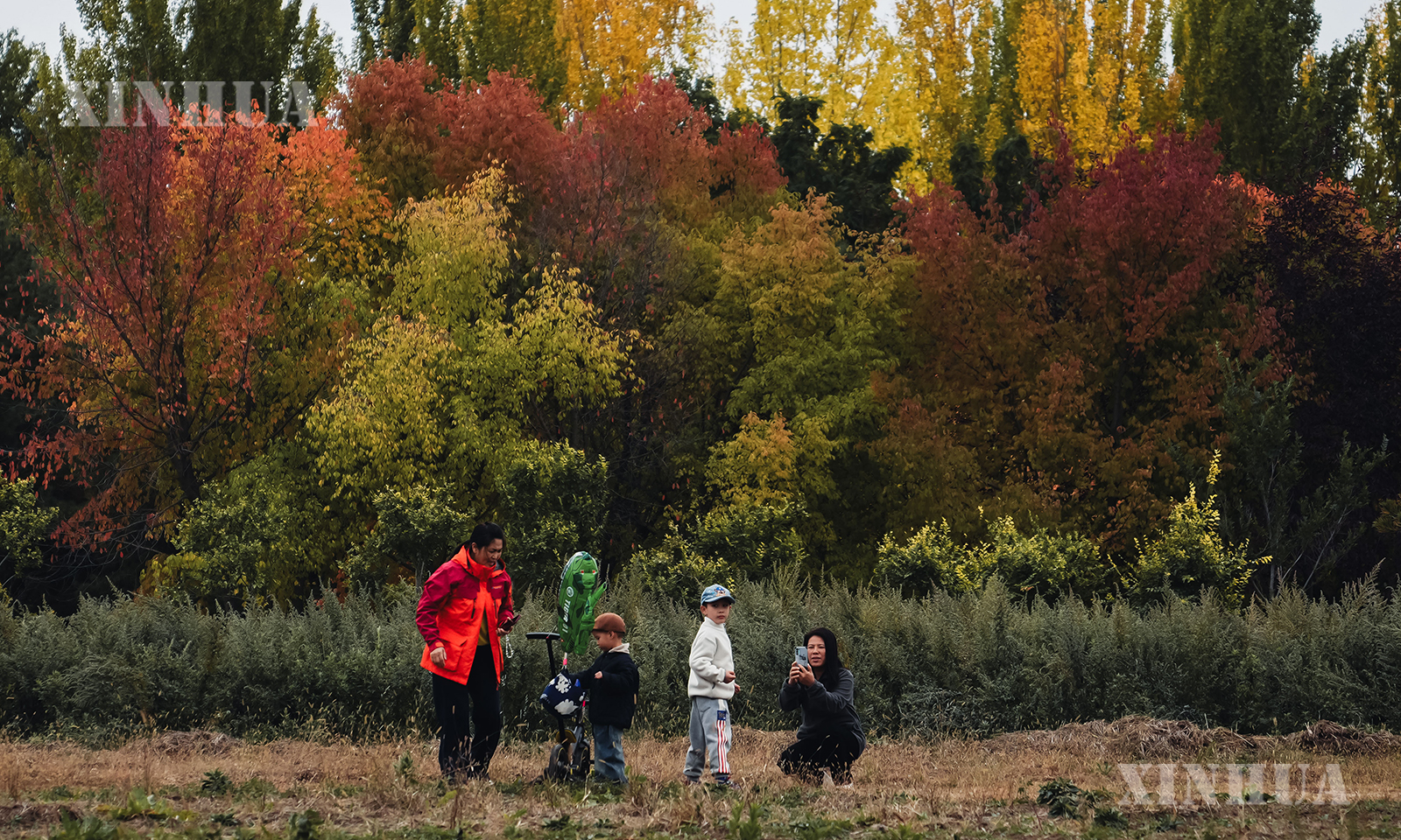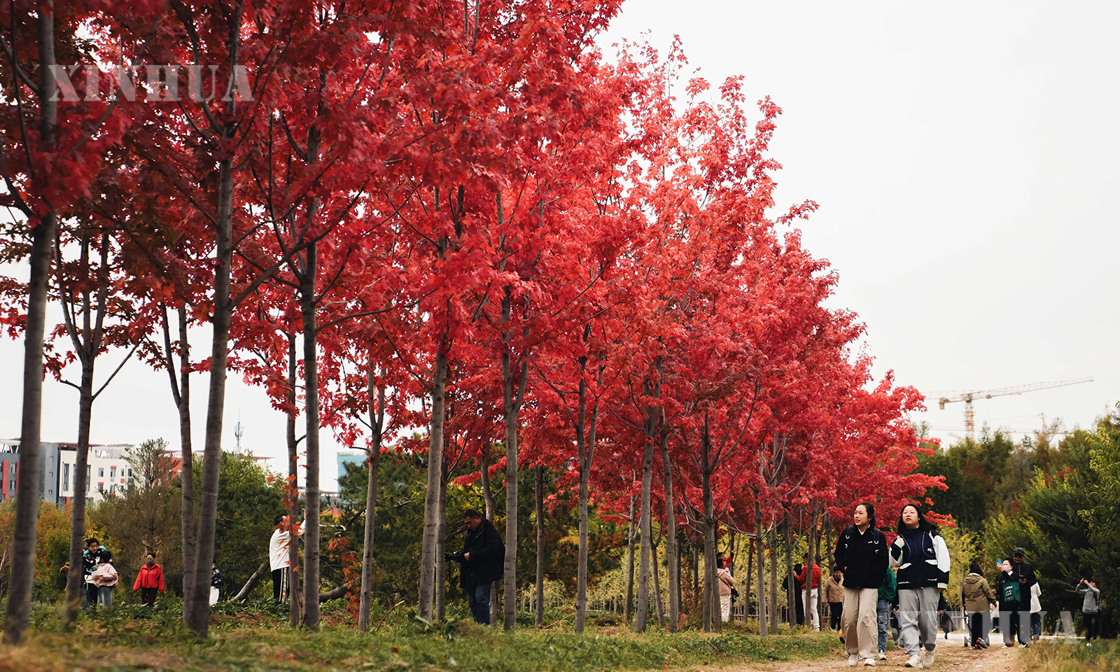 တရုတ်နိုင်ငံ ကျီလျင်ပြည်နယ် ချန်ချွန်းမြို့ရှိ ချန်ချွမ်းရုက္ခဗေဒဥယျာဉ်အတွင်း၌ ဆောင်းဦးရာသီ ရှုမြင်ကွင်းအား ရှုစားနေသူများကို ၂၀၂၅ ခုနှစ် အောက်တိုဘာ ၁၂ ရက်က တွေ့ရစဉ် (ဆင်ဟွာ)
