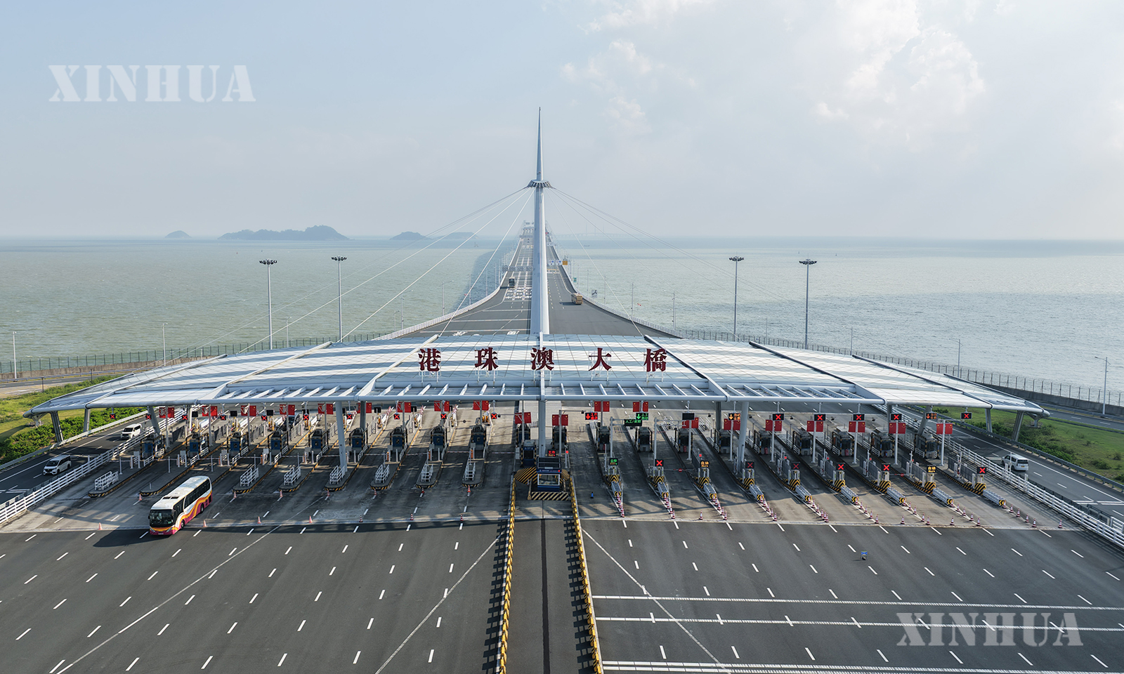 တရုတ်နိုင်ငံ ဟောင်ကောင်-ကျူးဟိုင်-မကာအို တံတားကြီး ဝင်ပေါက်အား ၂၀၂၅ ခုနှစ် အောက်တိုဘာ ၁၉ ရက်က တွေ့ရစဉ် (ဆင်ဟွာ)