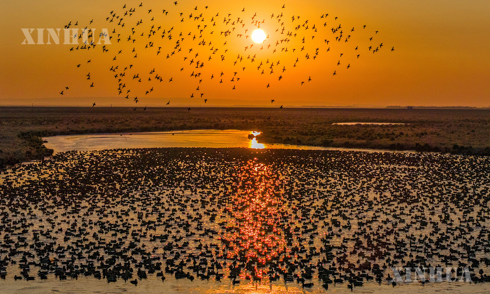 လက်ရှိအချိန်သည် တရုတ်နိုင်ငံ ဟေးလုံကျန်းပြည်နယ်မှ ရွှေ့ပြောင်းငှက်များ ရွှေ့ပြောင်းသွားလာသည့် အထွတ်အထိပ်ကာလဖြစ်သည်။ ပြည်နယ်တစ်ခုလုံးမှ ရွှေ့ပြောင်းငှက် နားခိုရာဒေသမှ ရွှေ့ပြောင်းငှက်များက အစုလိုက်အဖွဲ့လိုက် တောင်ပိုင်းသို့ ရွှေ့ပြောင်းပျံသန်းလျက်ရှိရာ ငှက်ပေါင်းတစ်သောင်း အုပ်စုလိုက် ပျံသန်းသွားလာနေသည့် ဂေဟပန်းချီကားလိပ်ပမာမြင်ကွင်းအား ရေးခြယ်ထားပေသည်။ (Xinhua)