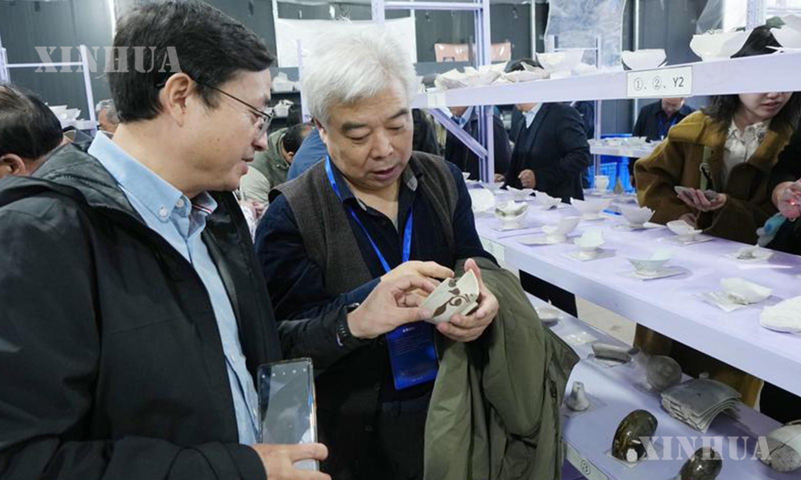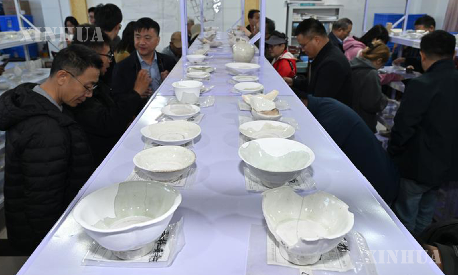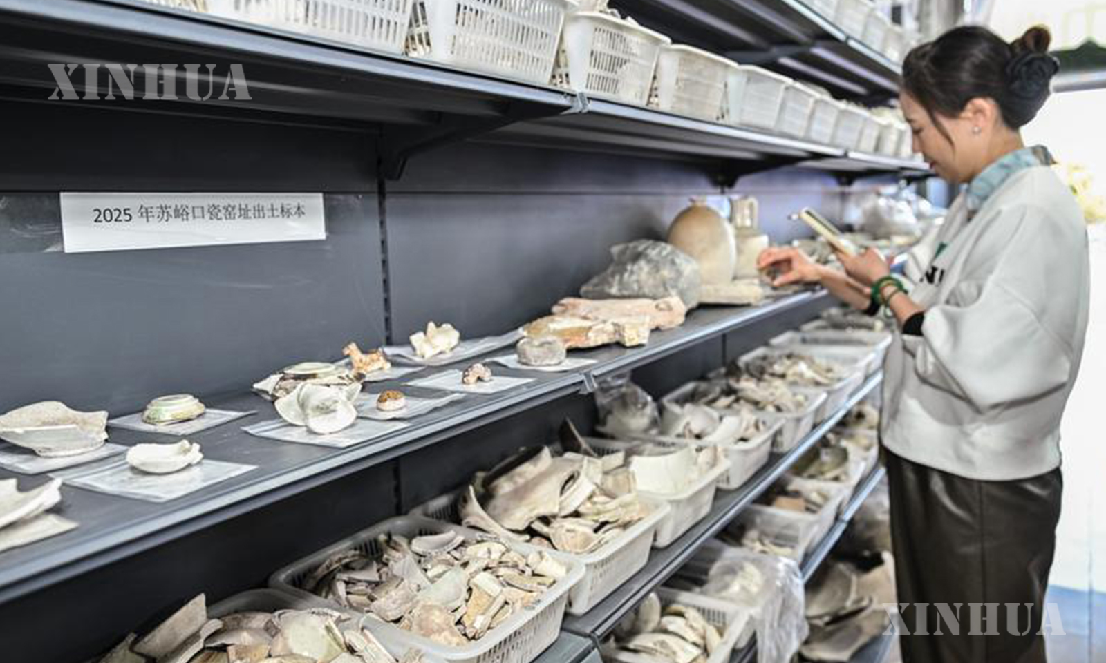 တရုတ်နိုင်ငံ စူးယွိခို ကြွေထည်ဖိုရှိ ရှေးဟောင်းသုတေသနအဖွဲ့ ယဉ်ကျေးမှုအမွေအနှစ်ပစ္စည်း ဂိုဒေါင်ခန်းတွင် တူးဖော်ရရှိသည့် ကြွေထည်များကို လေ့လာနေသည့် ရှေးဟောင်းသုတေသနပညာရှင်များအား ၂၀၂၅ ခုနှစ် အောက်တိုဘာ ၁၃ ရက်က တွေ့ရစဉ် (ဆင်ဟွာ)