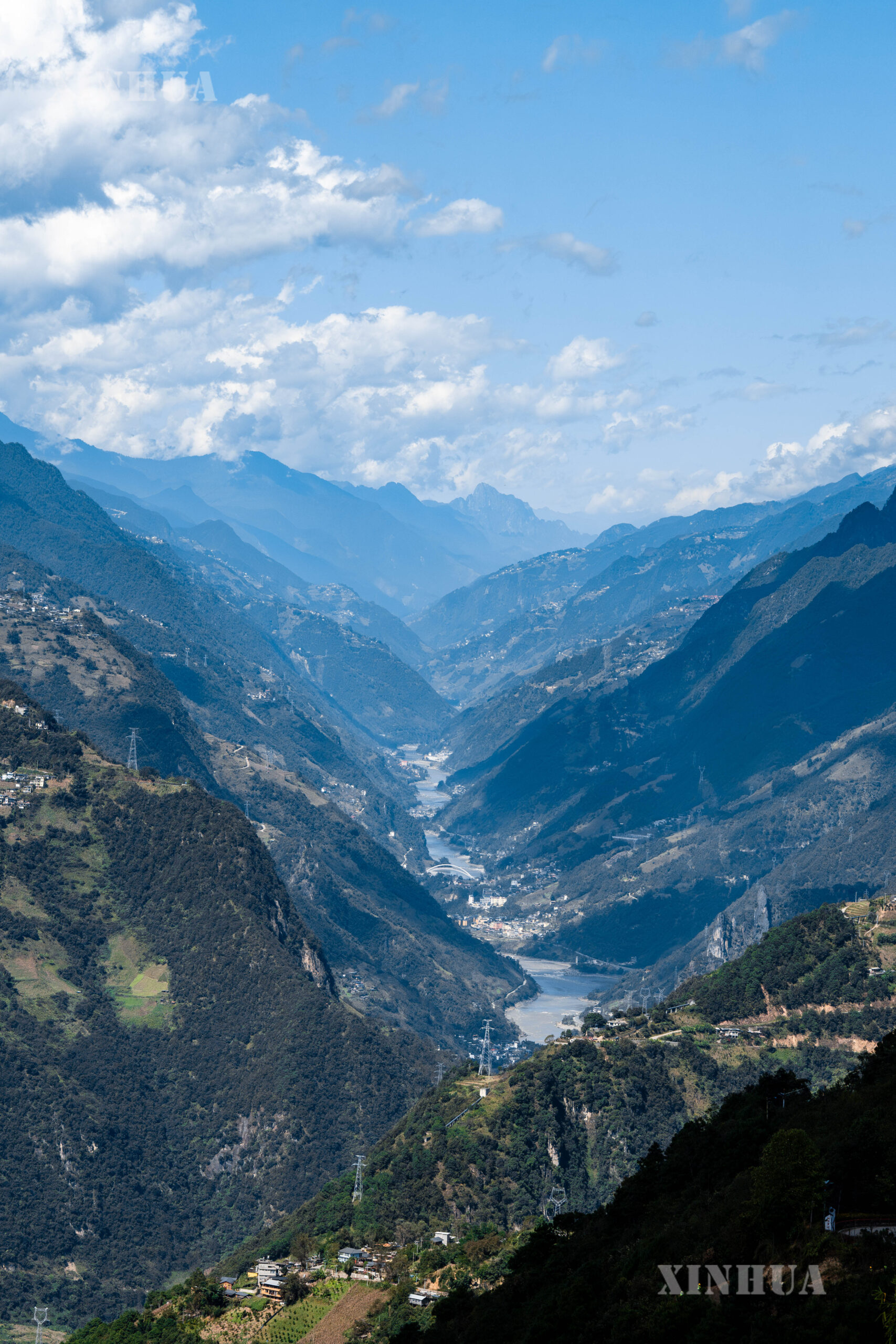 2、10月20日在老姆登村的观景台上拍摄的怒江大峡谷风光。新华社记者 胡超 摄
