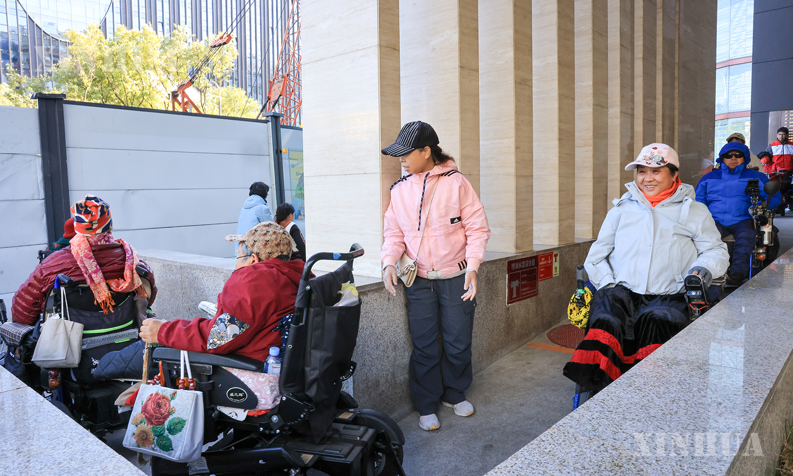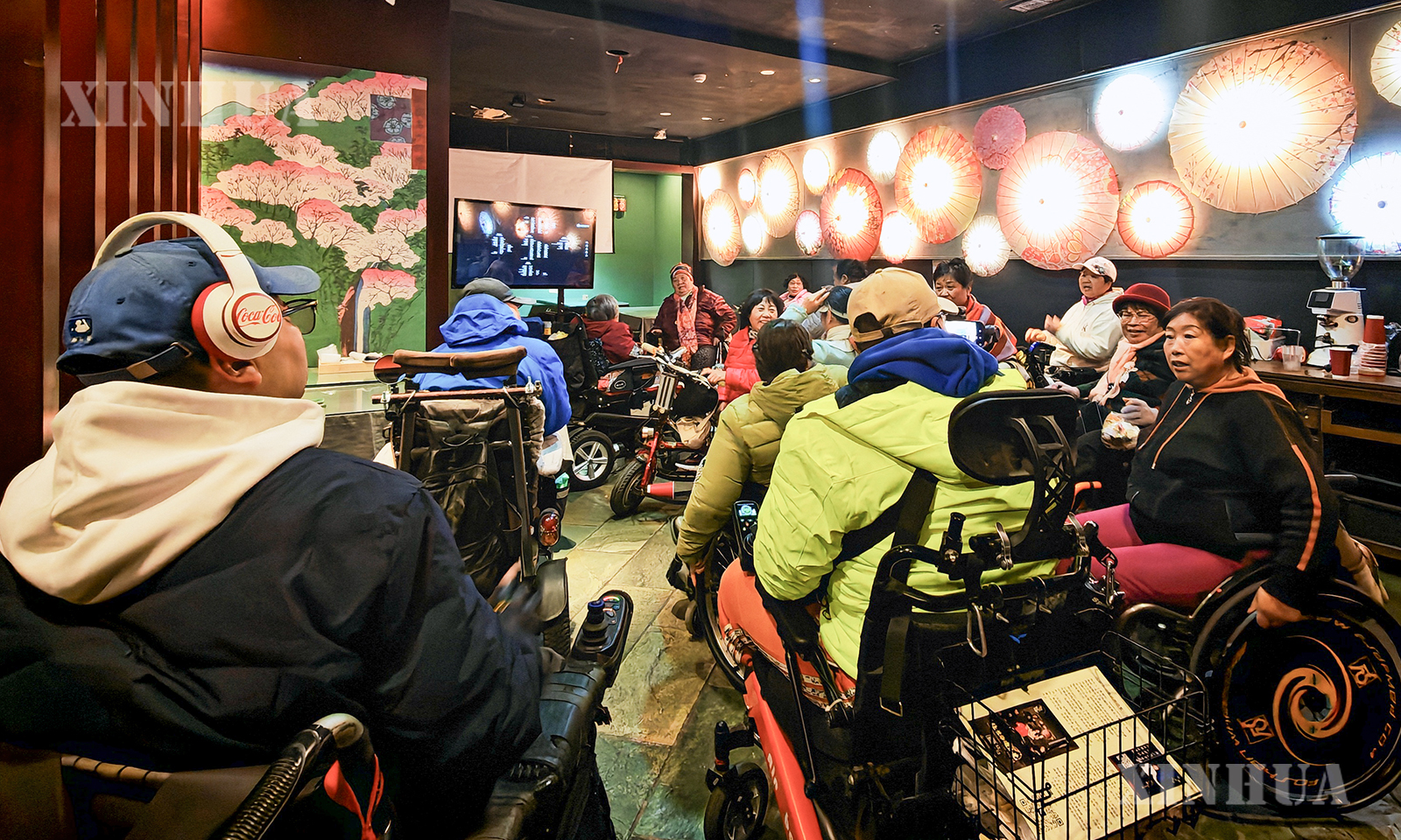 တရုတ်နိုင်ငံ ပေကျင်းမြို့ရှိ ထရိုဂျန်ဒဏ္ဍာရီ စားသောက်ဆိုင်၌ ကိုယ်လက်အင်္ဂါမသန်စွမ်းသူများက ရုပ်ရှင်ကြည့်ရှုပြီးနောက် အပြန်အလှန် ဖလှယ်နေသည်ကို ၂၀၂၅ ခုနှစ်‌ အောက်တိုဘာ ၂၆ ရက်က တွေ့ရစဉ် (ဆင်ဟွာ)