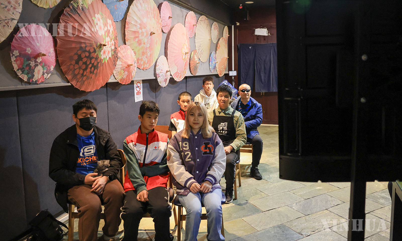 တရုတ်နိုင်ငံ ပေကျင်းမြို့ရှိ ထရိုဂျန်ဒဏ္ဍာရီ စားသောက်ဆိုင်၌ အမြင်အာရုံ မသန်စွမ်းသူများနှင့် စေတနာ့ဝန်ထမ်းများက အသံဖော်ပြချက်ပါဝင်သော အတားအဆီးမဲ့ရုပ်ရှင်အား အတူနားဆင်ကြည့်ရှုနေသည်ကို ၂၀၂၅ ခုနှစ်‌ အောက်တိုဘာ ၂၆ ရက်က တွေ့ရစဉ် (ဆင်ဟွာ)