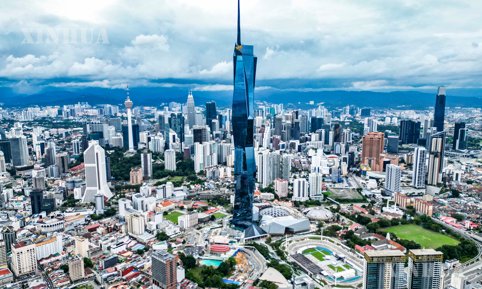 图说1:这是10月24日在马来西亚吉隆坡拍摄的中美经贸磋商举办地默迪卡118大楼(无人机照片)。新华社记者 朱炜 摄