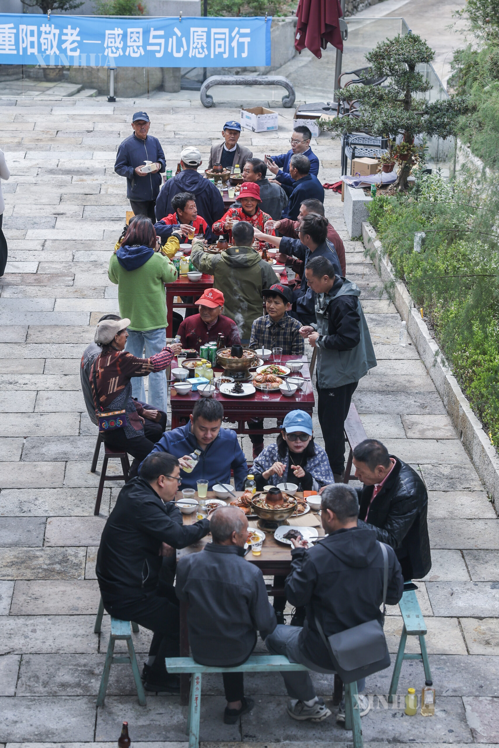 临近重阳节,杭州十多家爱心餐饮企业的工作人员来到浙江省杭州市淳安县官田自然村,收购村里留守老人们家中的农特产品,为老人们送上企业捐赠的棉被、电饭煲等生活物资,和老人们一起聚餐聊家常,一同迎接重阳节。官田村位于山区,是淳安县左口乡左口村下辖的一个自然村,村里大多是留守老人。从2025年初开始,杭州10多家爱心餐饮企业发起公益收菜计划,定期进村收菜,助力山里老人增收。
