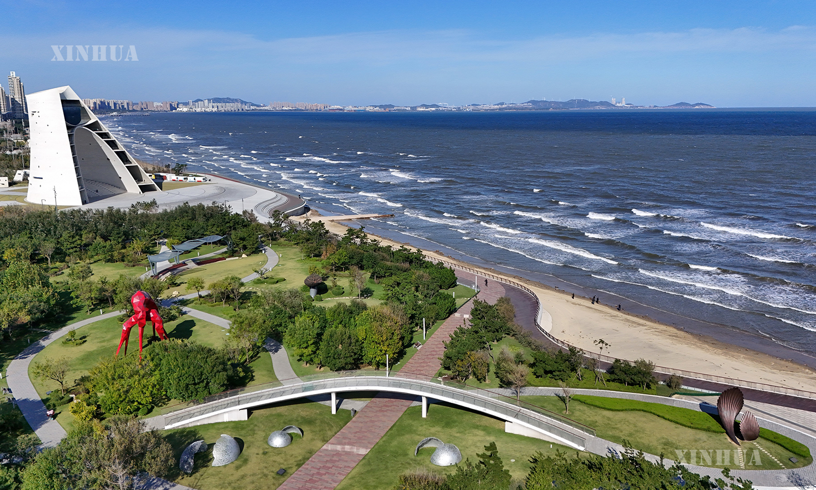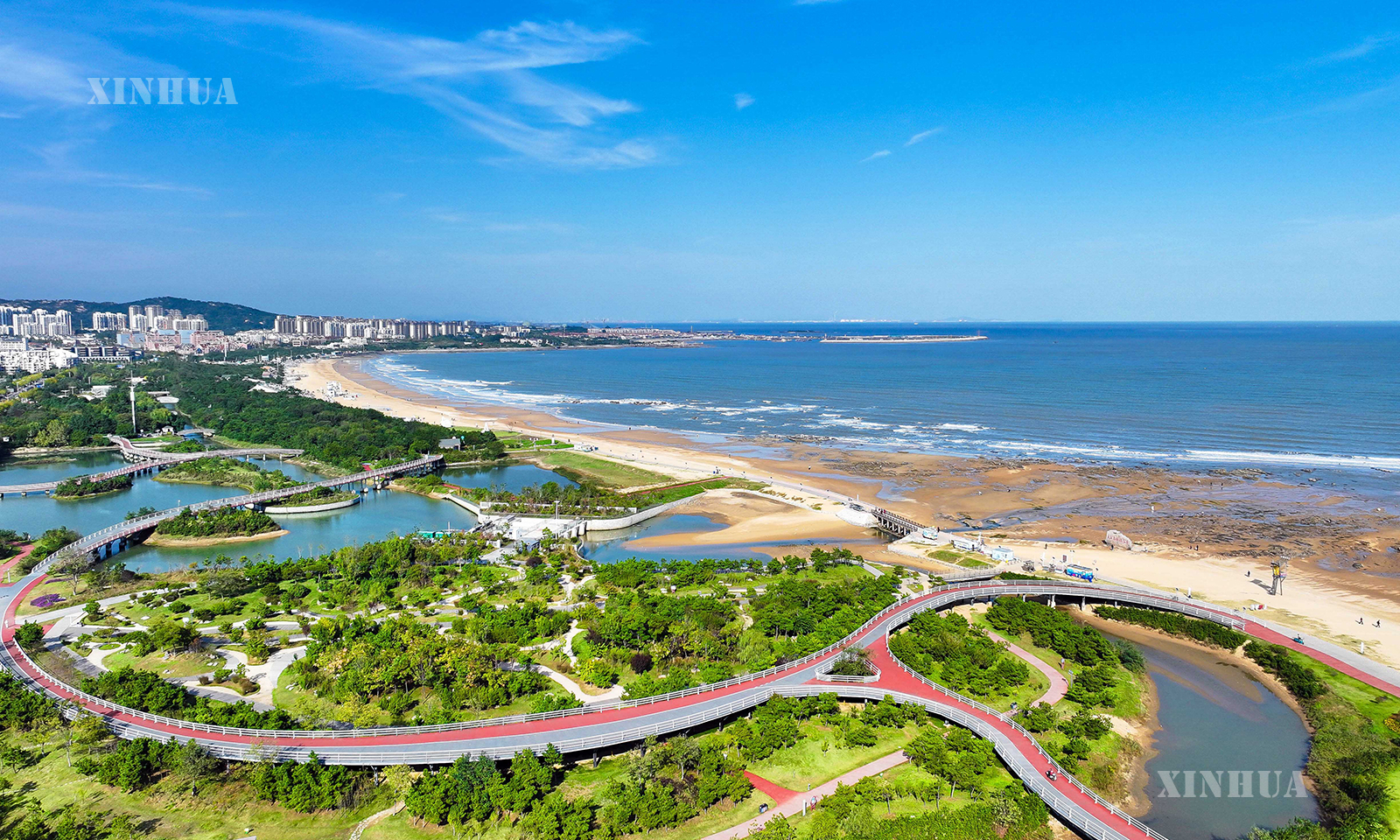 图说:10月22日拍摄的山东日照张北湾阳光海岸绿道及海湾景色(无人机照片)。 新华社记者 郭绪雷 摄