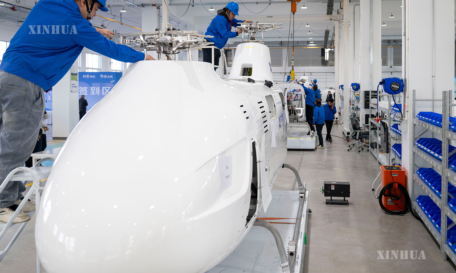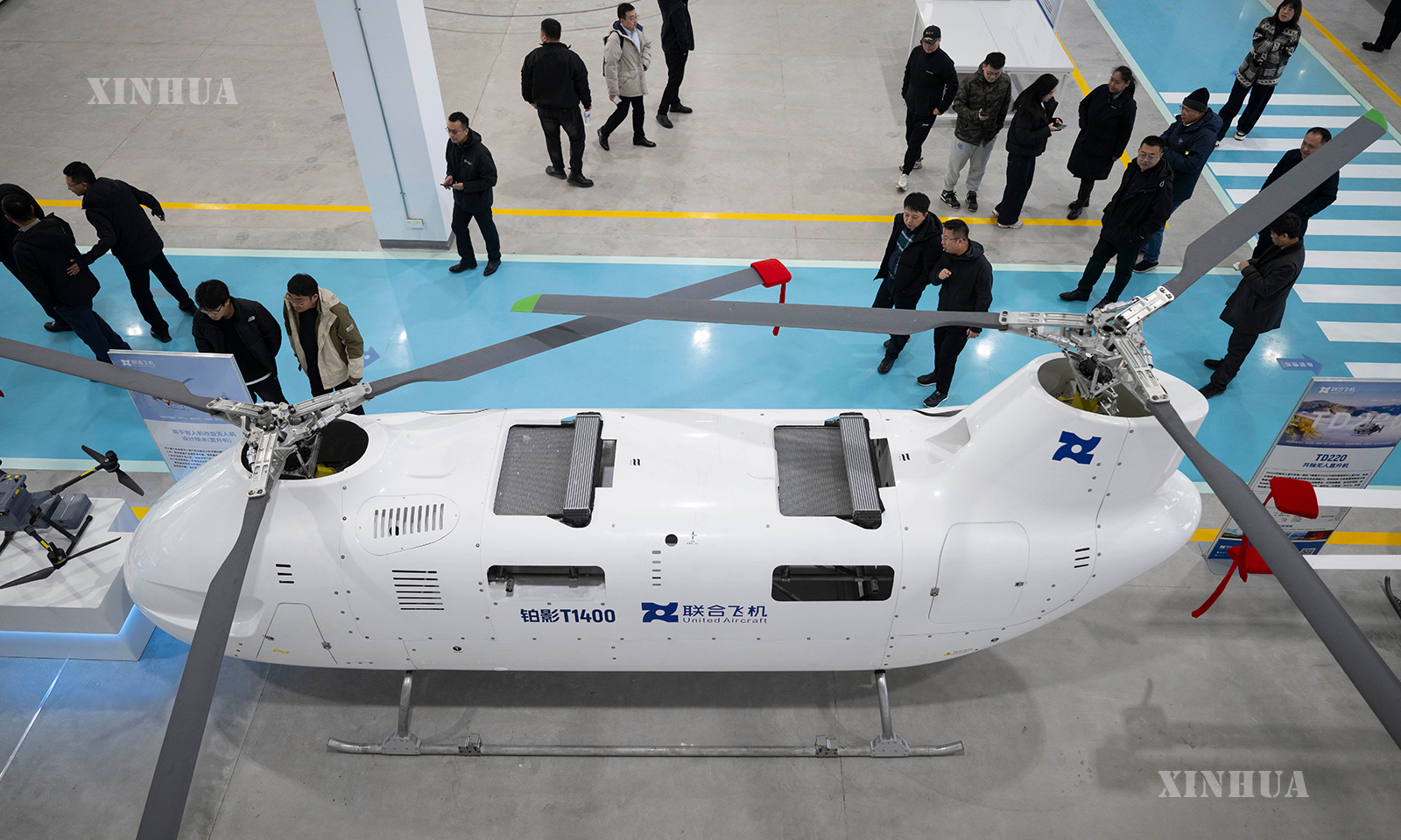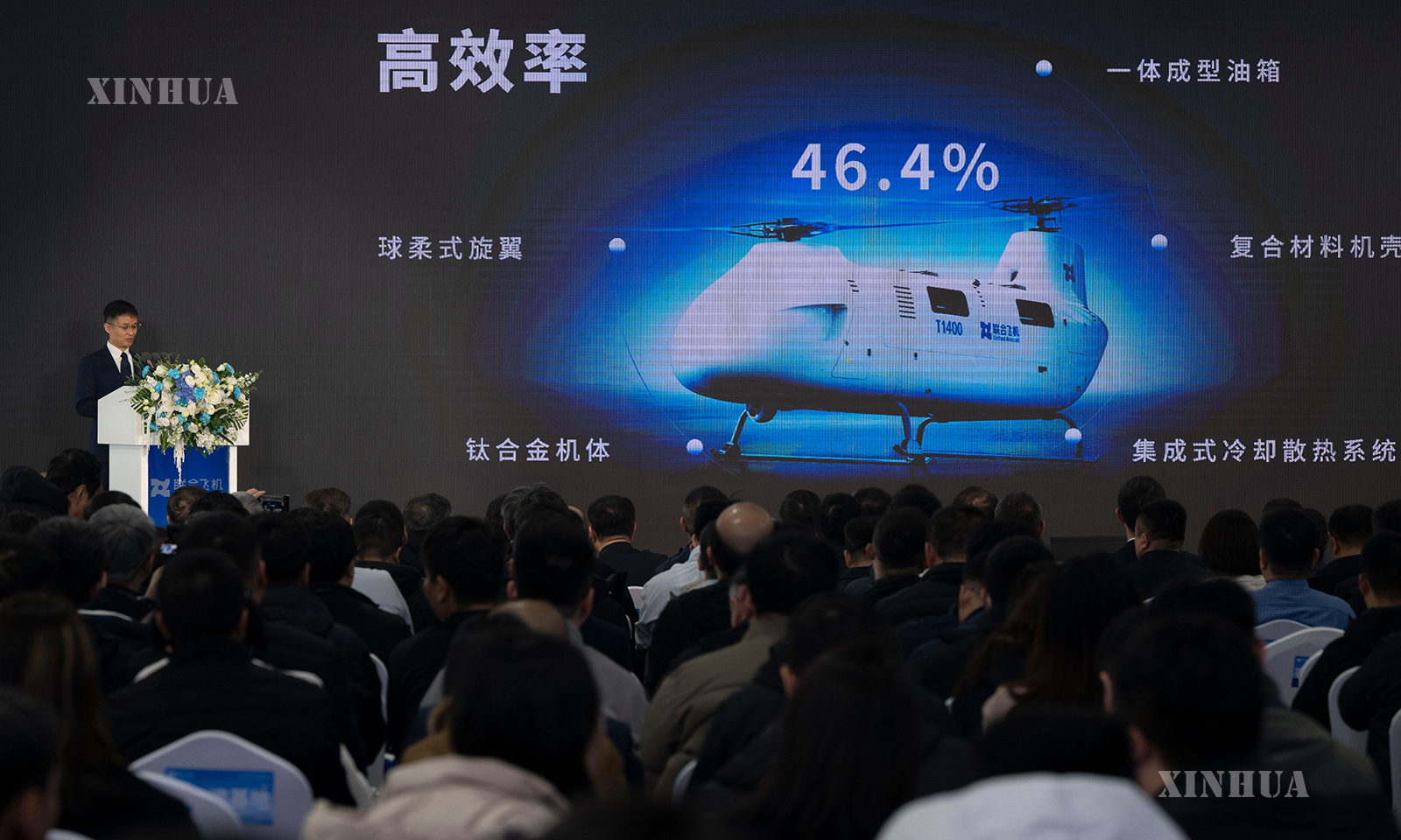 တရုတ်နိုင်ငံ ဟားအယ်ပင်းမြို့တွင် T1400 မောင်းသူမဲ့ ရဟတ်ယာဉ် ပထမဆုံးအကြိမ် ပျံသန်းမှု အခမ်းအနားကို အောက်တိုဘာ ၃၀ ရက်က တွေ့ရစဉ် (ဆင်ဟွာ)