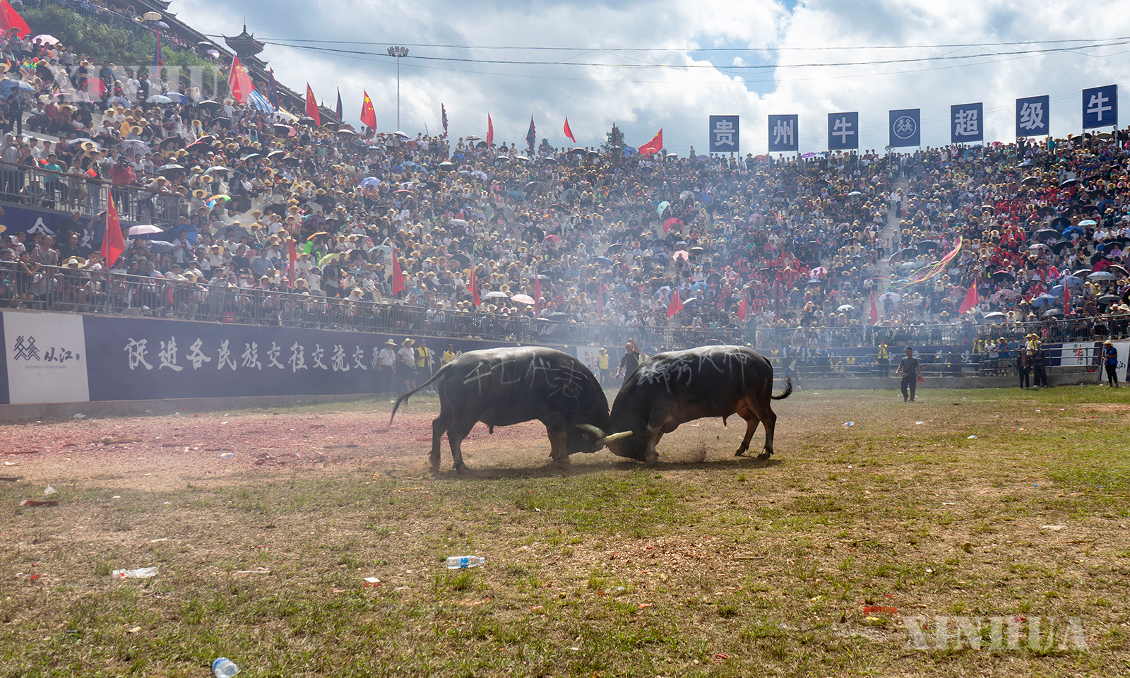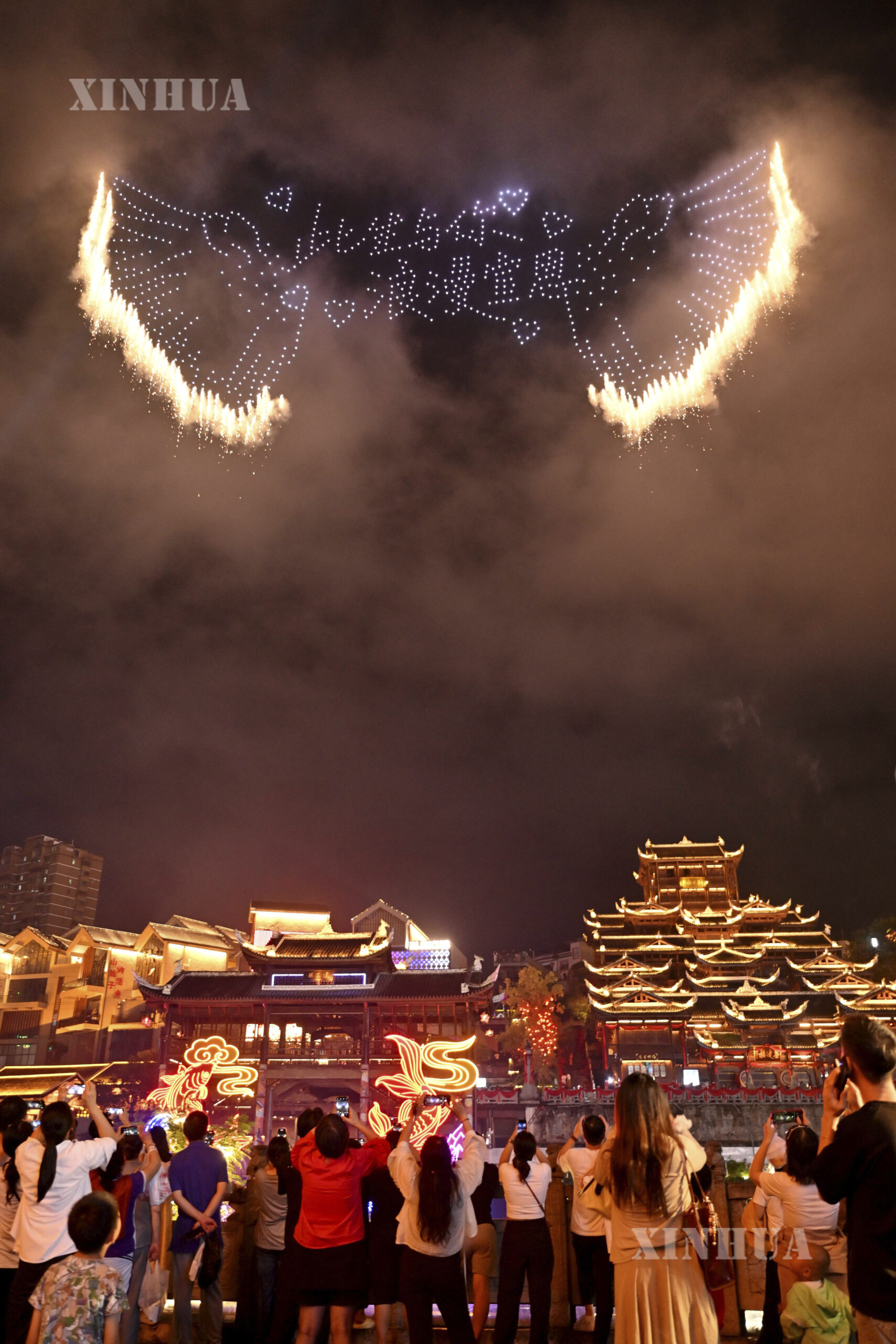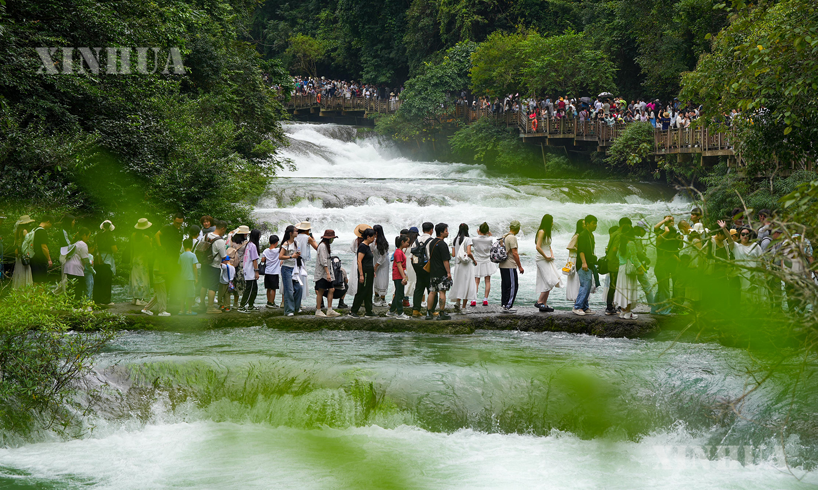 တရုတ်နိုင်ငံ ကွေ့ကျိုးပြည်နယ် ချန်နန် ပုရီးလူမျိုး မြောင်လူမျိုး ကိုယ်ပိုင်အုပ်ချုပ်ခွင့်ရ ပြည်နယ်ခွဲ လိပေါခရိုင် ရှောင်ချီးခုန် ရှုခင်းသာ၌ လည်ပတ်နေသူများကို ၂၀၂၅ ခုနှစ် အောက်တိုဘာ ၃ ရက်က တွေ့ရစဉ် (ဆင်ဟွာ)