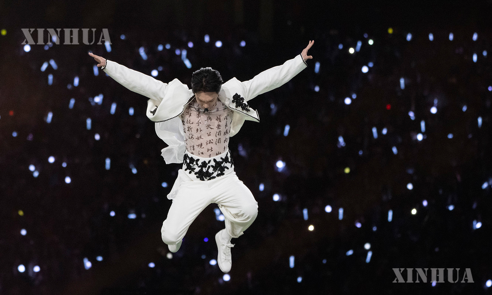 တရုတ်နိုင်ငံ ပေကျင်းမြို့ အမျိုးသားအားကစားကွင်း၌ ကျင်းပသည့် စတိတ်ရှိုးပွဲ၌ ဖျော်ဖြေတင်ဆက်နေသော ကျန်းရိရှင်းအား ၂၀၂၅ ခုနှစ် အောက်တိုဘာ ၆ ရက်က တွေ့ရစဉ် (ဆင်ဟွာ)