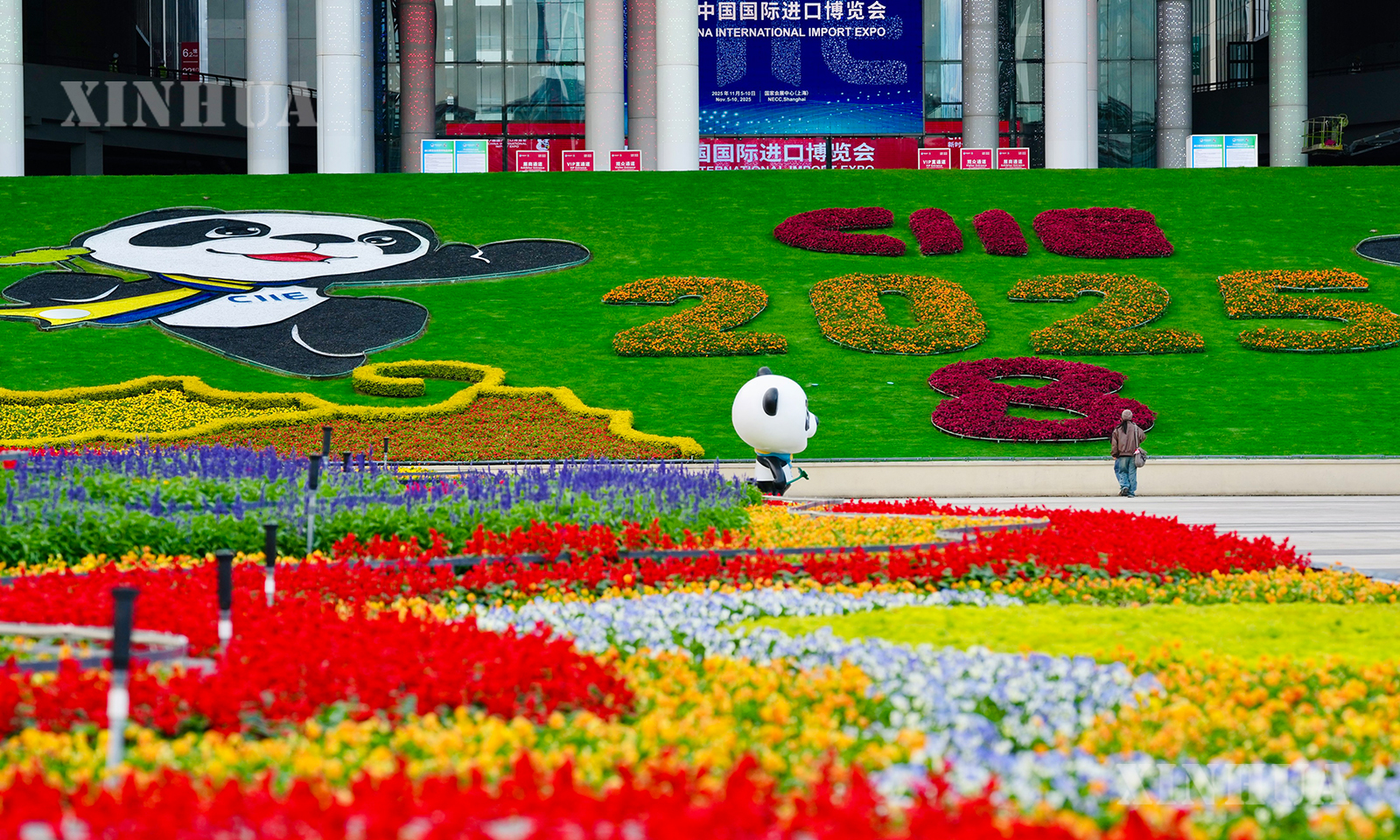 တရုတ်နိုင်ငံ ရှန်ဟိုင်းမြို့ရှိ ၈ ကြိမ်မြောက် တရုတ်နိုင်ငံ နိုင်ငံတကာ သွင်းကုန်ပြပွဲ (CIIE) ကျင်းပရာ အမျိုးသားပြပွဲနှင့် ကွန်ဗင်းရှင်းစင်တာ (ရှန်ဟိုင်း) ၏ တောင်ဘက်ရင်ပြင်ကို ၂၀၂၅ ခုနှစ် အောက်တိုဘာ ၂၉ ရက်က တွေ့ရစဉ် (ဆင်ဟွာ)