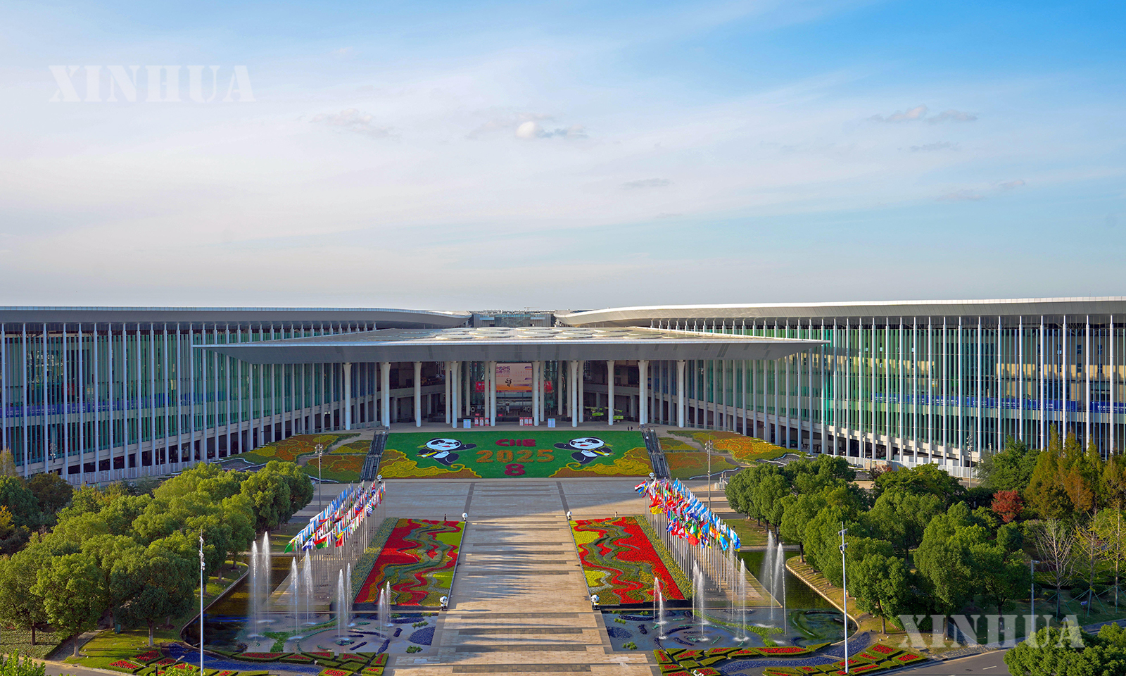 တရုတ်နိုင်ငံ ရှန်ဟိုင်းမြို့ရှိ ၈ ကြိမ်မြောက် တရုတ်နိုင်ငံ နိုင်ငံတကာ သွင်းကုန်ပြပွဲ (CIIE) ကျင်းပရာ အမျိုးသားပြပွဲနှင့် ကွန်ဗင်းရှင်းစင်တာ (ရှန်ဟိုင်း) ၏ တောင်ဘက်ရင်ပြင်ကို ၂၀၂၅ ခုနှစ် အောက်တိုဘာ ၂၉ ရက်က တွေ့ရစဉ် (ဆင်ဟွာ)