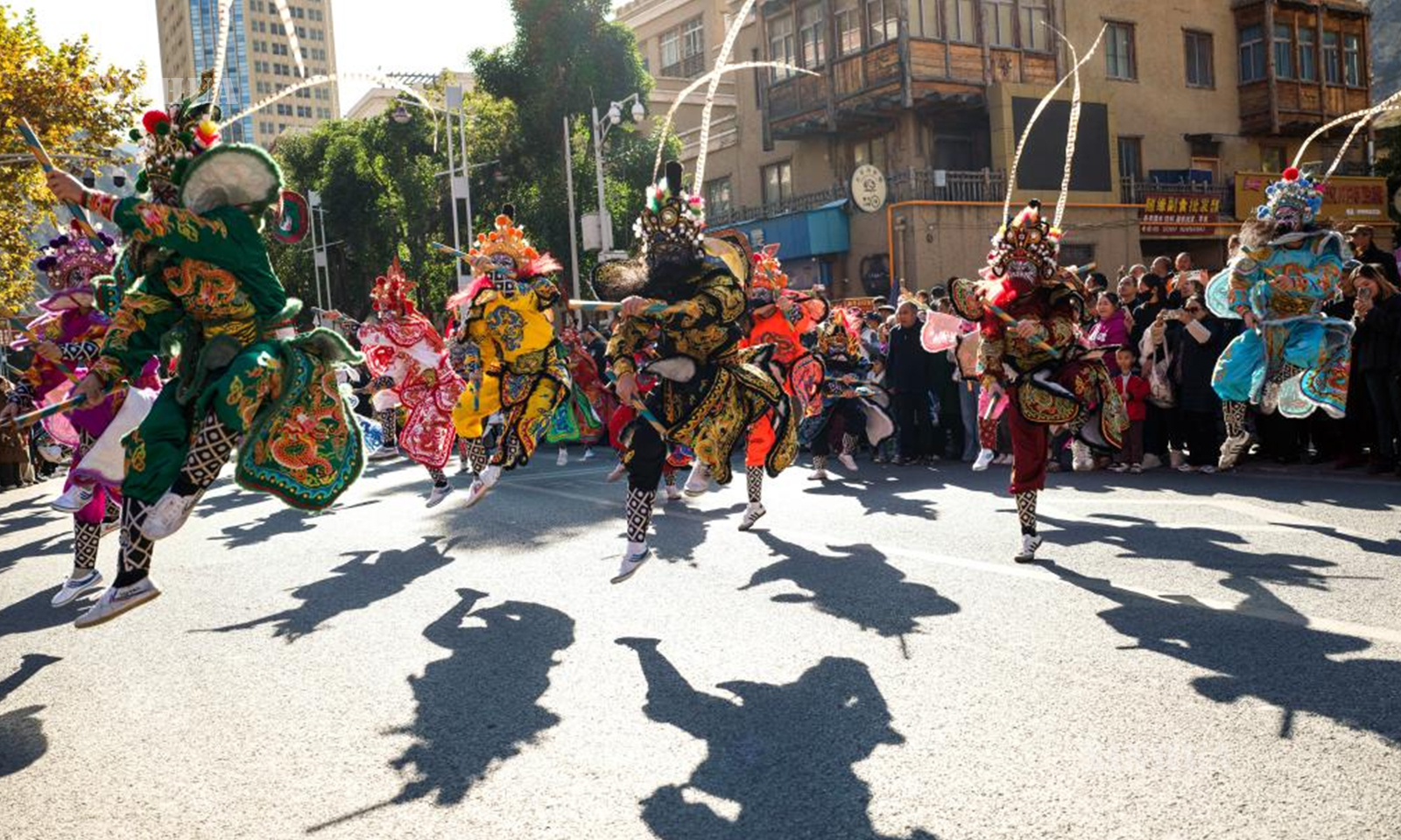 Sichuan opera is staged during an event celebrating the Qiang New Year in Wenchuan County, Aba Tibetan and Qiang Autonomous Prefecture, southwest China’s Sichuan Province, Nov. 19, 2025. (Photo by Lan Hongguang/Xinhua)