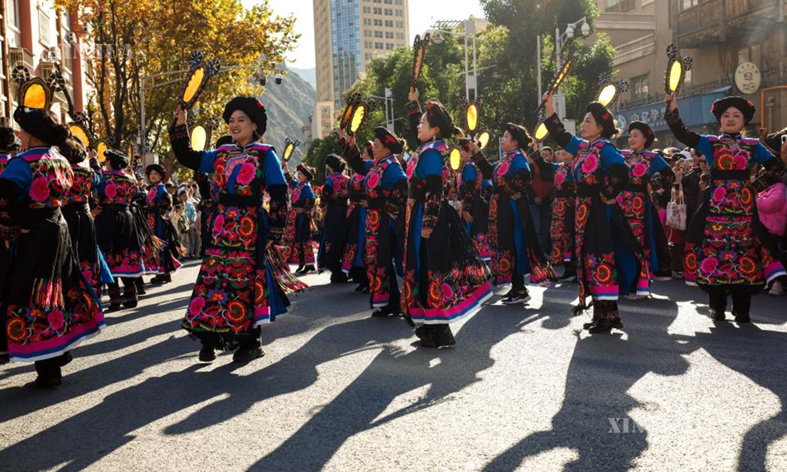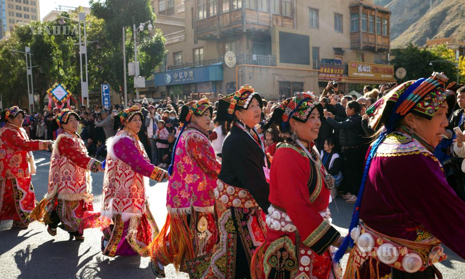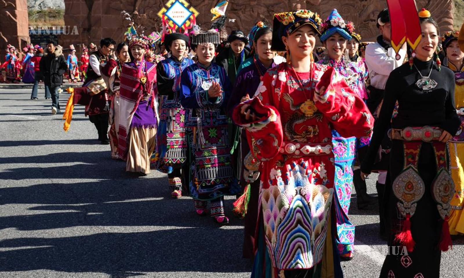 Women in ethnic attire perform during an event celebrating the Qiang New Year in Wenchuan County, Aba Tibetan and Qiang Autonomous Prefecture, southwest China’s Sichuan Province, Nov. 19, 2025.