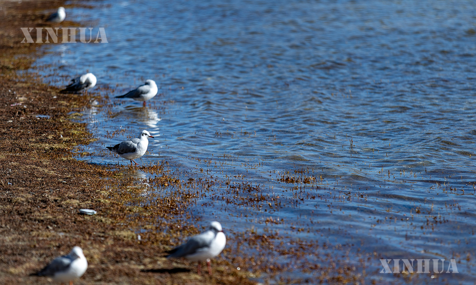 3、这是11月20日在羊卓雍错岸边拍摄的红嘴鸥。新华社记者 李键 摄