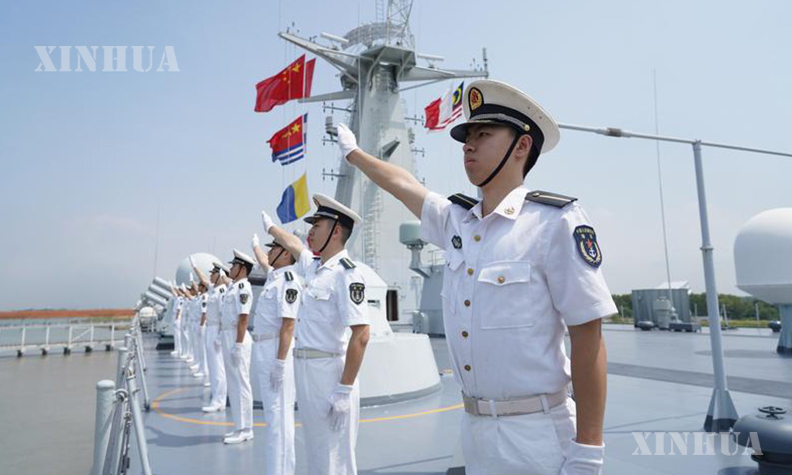 မလေးရှားနိုင်ငံ ကလန်ဆိပ်ကမ်း၌ တရုတ်ရေတပ်သင်္ဘောပေါ်ပါ သင်တန်းသားများက သင်္ဘောကုန်းပတ်တွင် အဖွဲ့လိုက်တန်းစီကာ လာရောက်ပို့ဆောင်နှုတ်ဆက်သောအဖွဲ့အား လက်ပြနှုတ်ဆက်ခဲ့ကြသည်ကို ၂၀၂၅ ခုနှစ် ဒီဇင်ဘာ ၃ ရက်က တွေ့ရစဉ် (ဆင်ဟွာ)