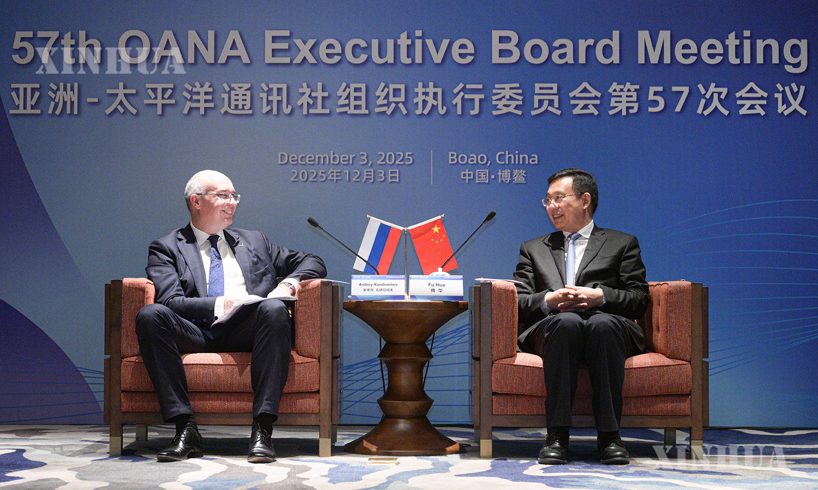 新华社海南博鳌12月3日电(记者吴茂辉)新华社社长傅华3日在海南博鳌分别会见塔斯社社长安德烈·孔德拉绍夫、马来西亚国家新闻社首席执行官努鲁·阿菲达、越南通讯社社长武越庄等来华出席亚洲—太平洋通讯社组织执行委员会第57次会议的多国媒体负责人。