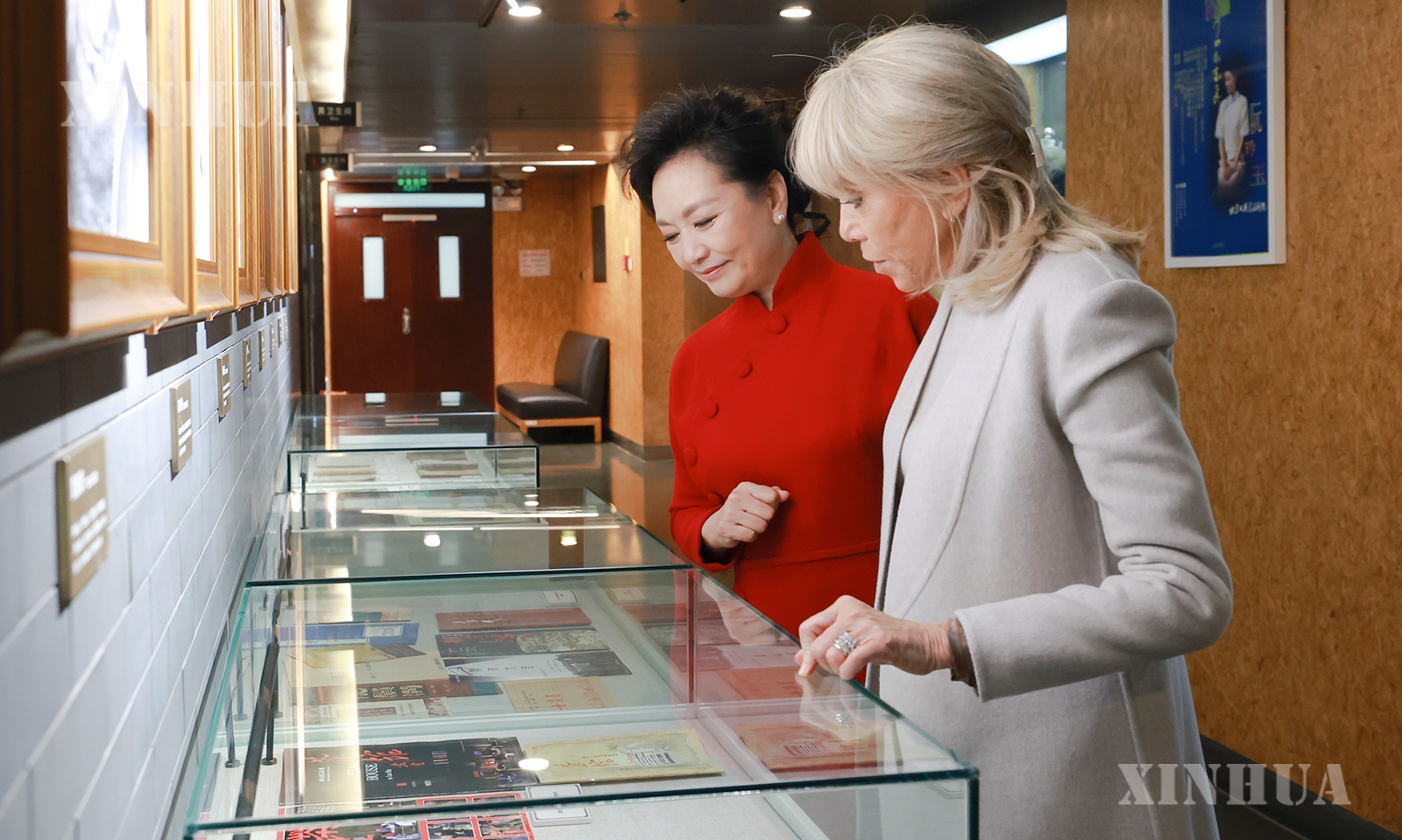 ဖုန်လိယွမ်နှင့် Brigitte Macron တို့သည် ပြဇာတ်ရုံပြတိုက်သို့ အတူသွားရောက်၍ ပေကျင်းပြည်သူ့အနုပညာဖွံ့ဖြိုးတိုးတက်မှုဖြစ်စဉ်နှင့် ပြင်သစ်ပြဇာတ်လောကနှင့် သွားလာဆက်ဆံမှု အခြေအနေအား အသေးစိတ်လေ့လာခဲ့သည်။ နှစ်နိုင်ငံအကြီးအကဲများ၏ ဇနီးတို့သည် ပြဇာတ်အတွင်း၌ ဂန္ထဝင်ပြဇာတ် “လက်ဖက်ရည်ကြမ်းဆိုင်” စင်မြင့်ခင်းကျင်းပြသထားပုံကို စိတ်ဝင်တစား လေ့လာကြည့်ရှုခဲ့သည်။ ပြဇာတ်စင်တာ၌ ဖုန်လိယွမ်သည် ပြဇာတ်အတူတကွရှုစားရန် Brigitte Macron အား ဖိတ်ခေါ်ခဲ့ပြီး ဖျော်ဖြေတင်ဆက်သူများနှင့် ရင်းနှီးစွာအပြန်အလှန်ဖလှယ်ခဲ့သည်။