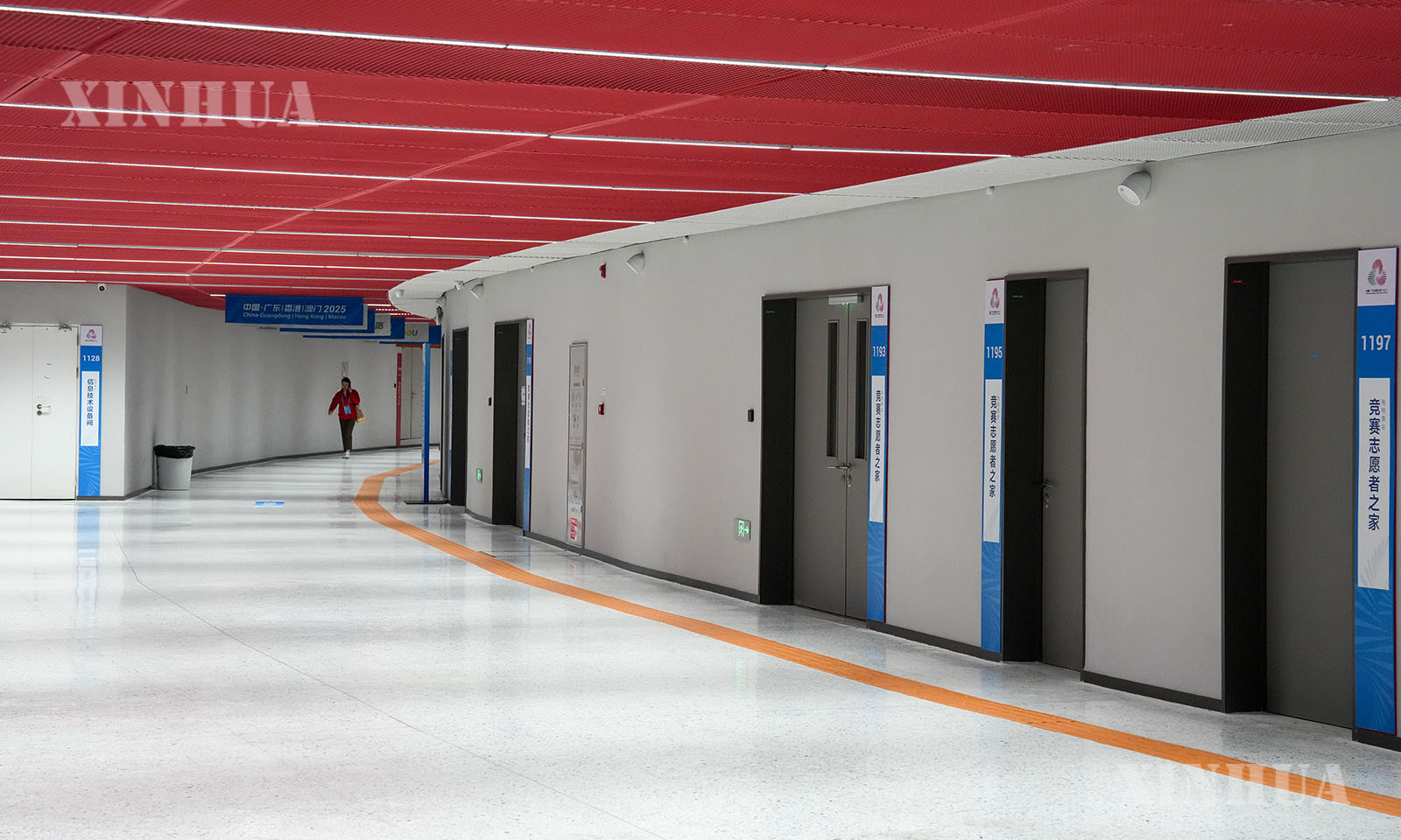 တရုတ်နိုင်ငံ ကွမ်တုန်း အိုလံပစ် အားကစားစင်တာ အားကစားကွင်းရှိ အဆင်ပြေချောမွေ့မှုရှိသော ဝန်ဆောင်မှုစင်တာကို ဒီဇင်ဘာ ၇ ရက်က တွေ့ရစဉ် (ဆင်ဟွာ)