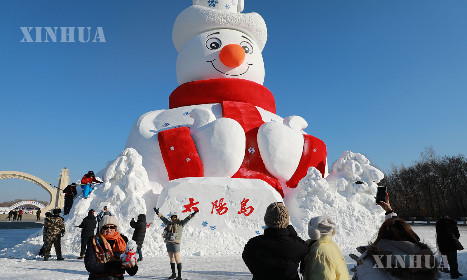 12月9日,第38届太阳岛雪博会标志性雪塑景观“雪人先生”在哈尔滨太阳岛风景区正式亮相。“雪人先生”高23.8米,用雪量达5000立方米。