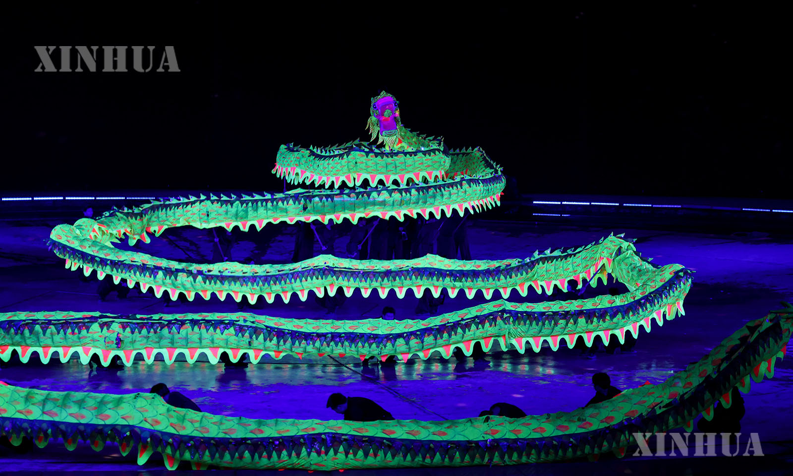 图说5:这是12月6日在铜梁区玄天湖龙舞广场拍摄的《追梦·铜梁龙》演出现场。新华社记者 黄伟 摄