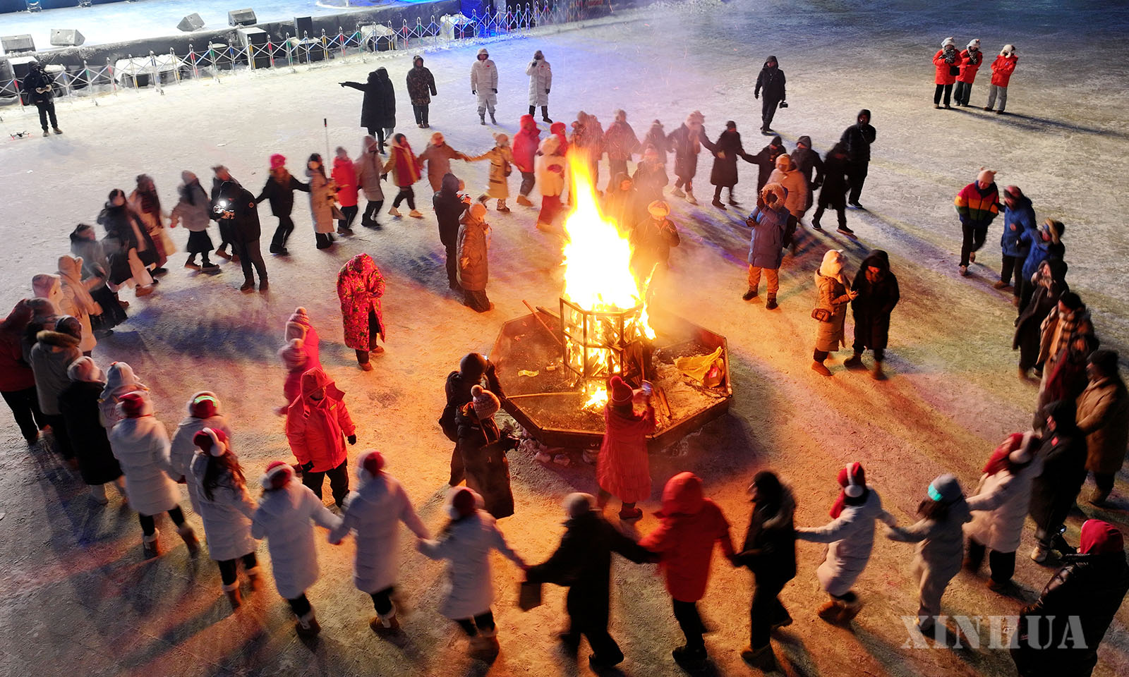 တရုတ်နိုင်ငံ ဟေးလုံကျန်းပြည်နယ် မော့ဟယ်မြို့ ပေကျီရွာအခမ်းအနား၌ မီးပုံပွဲတော် တက်ရောက်နေသူများကို ၂၀၂၅ ခုနှစ် ဒီဇင်ဘာ ၂၁ ရက်က တွေ့ရစဉ် (ဆင်ဟွာ)