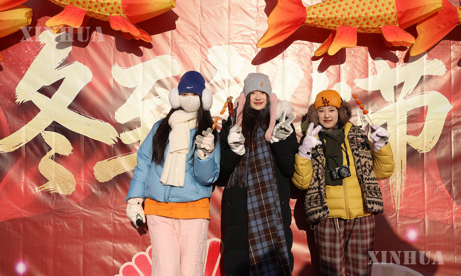 3、12月21日,游人在北极村活动现场留影。新华社发(邵天李摄)