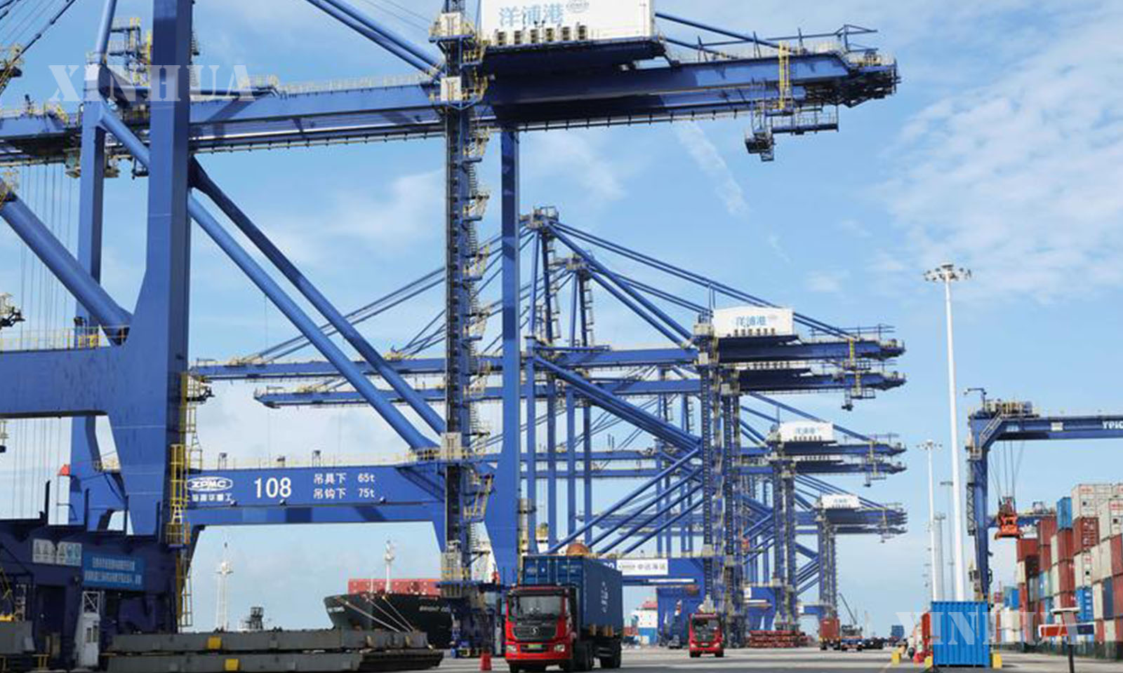 2. 这是5月28日拍摄的海南洋浦国际集装箱码头。新华社记者 金皓原 摄