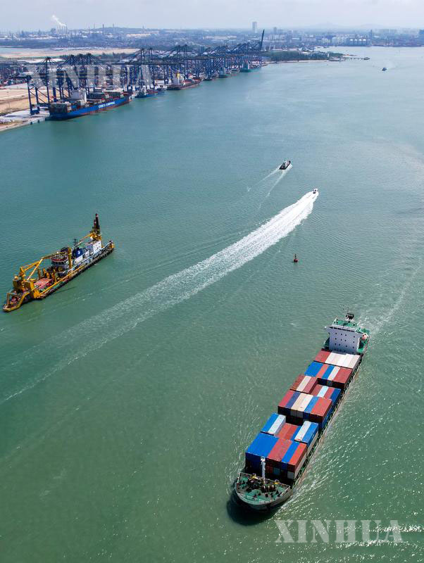 တရုတ်နိုင်ငံ ဟိုင်နန်ပြည်နယ် ယန်ဖူအပြည်ပြည်ဆိုင်ရာ ကွန်တိန်နာဆိပ်ကမ်းအား ၂၀၂၅ ခုနှစ် မေ ၂၈ ရက်က တွေ့ရစဉ် (ဆင်ဟွာ)