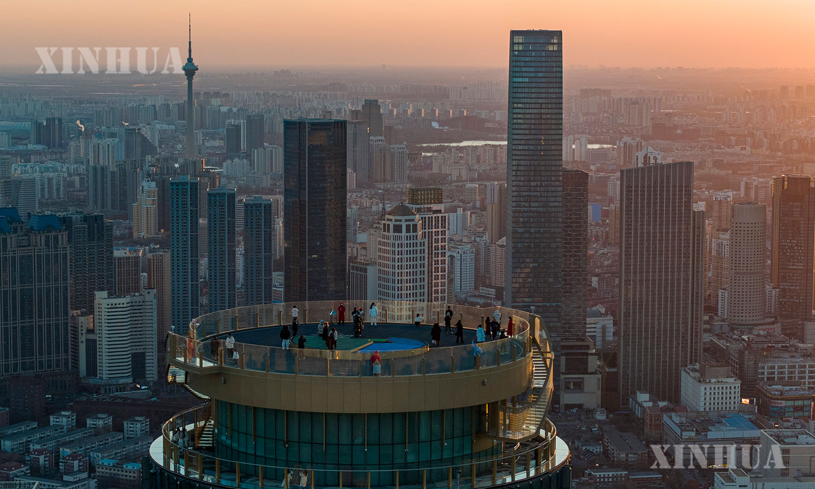 တရုတ်နိုင်ငံ ထျန်းကျင်းမြို့ ဟယ်ဖိန်ခရိုင် ကျင်းဝမ်းရင်ပြင်၏ အချက်အချာနေရာတွင် တည်ရှိသော ကျင်းဝမ်းယွင်တိန် ရှုမျှော်စင်ကို မကြာသေးမီရက်က စတင်ဖွင့်လှစ်ခဲ့သည်။ လာရောက်လည်ပတ်သူများသည် မီတာ ၃၀၀ အမြင့်ရှိသော အဆောက်အဦအပေါ်ဆုံးသို့ တက်ရောက်ပြီး ထျန်းကျင်းမြို့လယ်၏ မြင်ကွင်းကျယ်များကို ကြည့်ရှုနိုင်ပေသည်။ (Xinhua)
