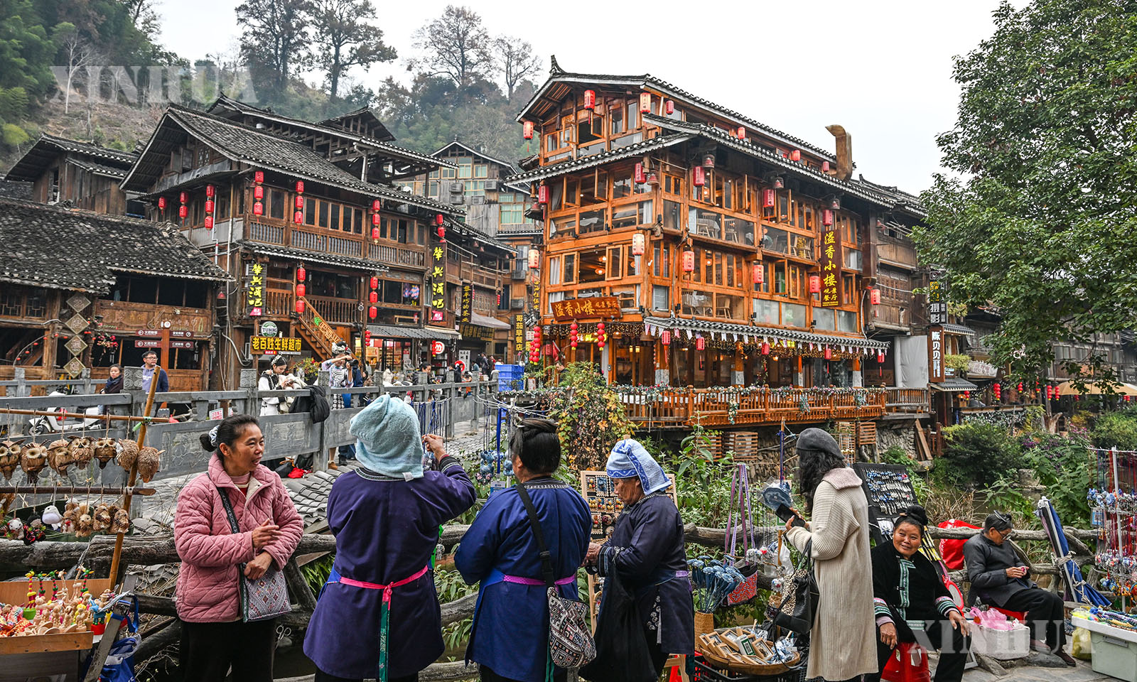 1、村民在贵州省黎平县肇兴侗寨售卖文创产品(12月20日摄)。 新华社记者 杨文斌 摄