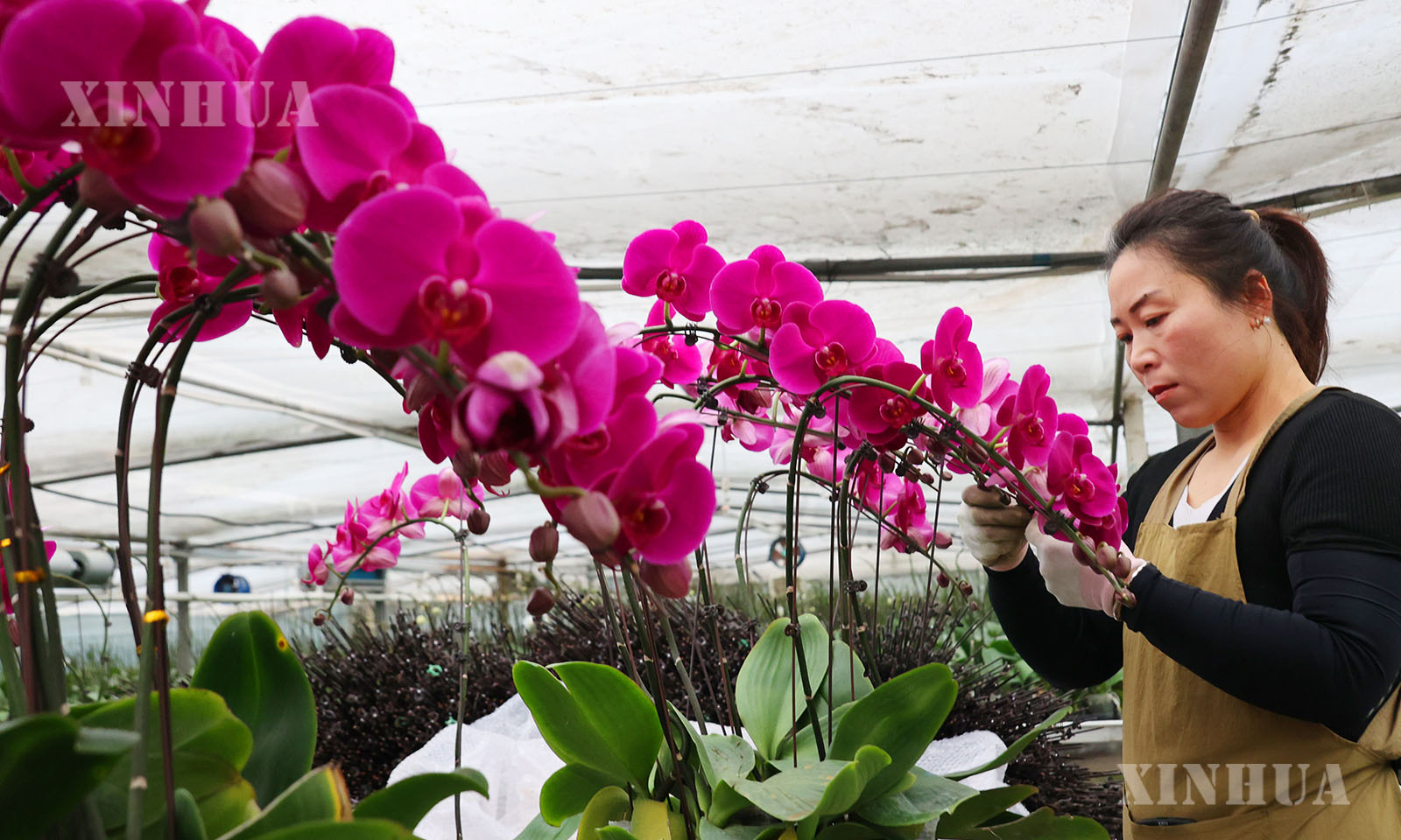 1、2:12月23日,甘肃省定西市临洮县一花卉种植基地的工人在管护蝴蝶兰。新华社发(王克贤摄)