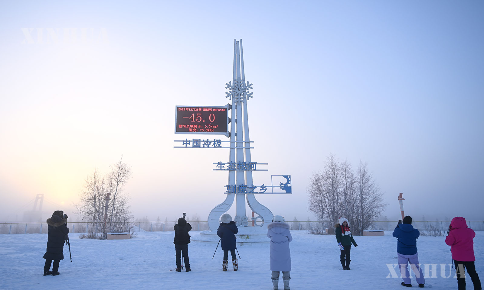 တရုတ်နိုင်ငံ၏ အအေးဆုံးဝင်ရိုးစွန်းမြို့ဖြစ်သည့် အတွင်းမွန်ဂိုလီးယားဒေသ ဟူးလွန်ပေ့အယ်မြို့ ကန်းဟယ်မြို့လေးသည် ဒီဇင်ဘာ ၂၆ ရက် နံနက်ခင်းတွင် အပူချိန်သည် အနုတ် ၄၅ ဒီဂရီ စင်တီဂရိတ် ဖြစ်ပေါ်လာခဲ့သည်။ သို့သော်လည်း အေးခဲလှသောရာသီဥတုသည် လူနေမှုဘဝခြေလှမ်းများကို မရပ်တန့်သွားစေခဲ့ပေ။ နံနက်ခင်းဈေးလည်း အချိန်မှန်ဖွင့်လှစ်ပြီး မြို့သူ၊ မြို့သားများကလည်း ပုံမှန်အတိုင်း ဈေးဝယ်ထွက်နေကြသည်။ ဒေသအသီးသီးမှ ခရီးသွားဧည့်သည်များနှင့် လိုက်ဖ်လွှင့်သူများကမူ ကင်မရာဖြင့် အဆိုပါရေခဲဆီးနှင်းမြင်ကွင်းကို မှတ်တမ်းတင်နေကြသည်။ (Xinhua)